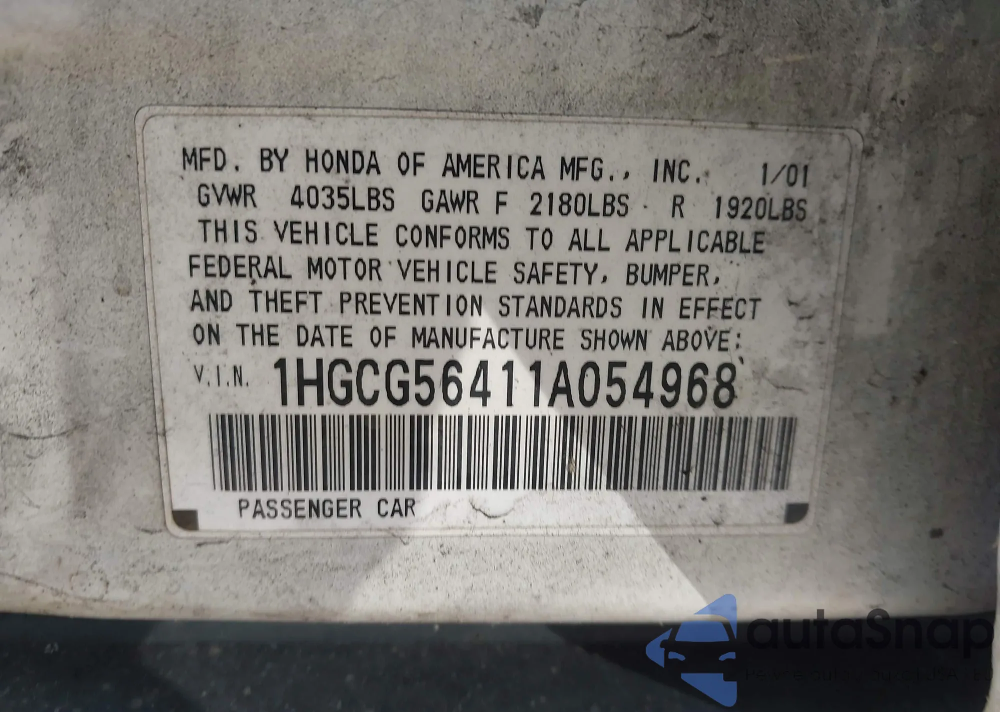 • VIN: 1HGCG56411A054968