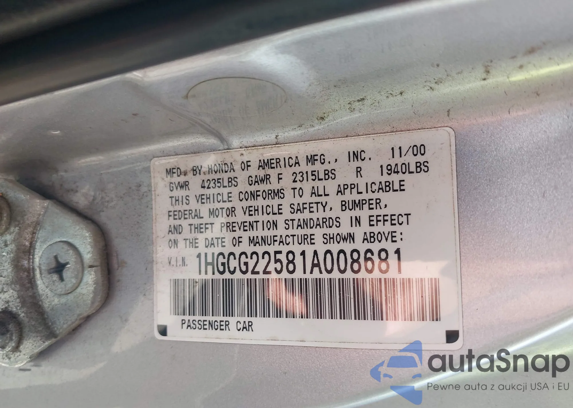 VIN: 1HGCG22581A008681