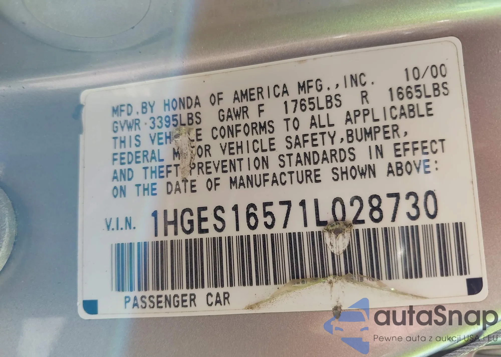 Honda Civic 2001 – Historia pojazdu (sprzedany na IAAI)
