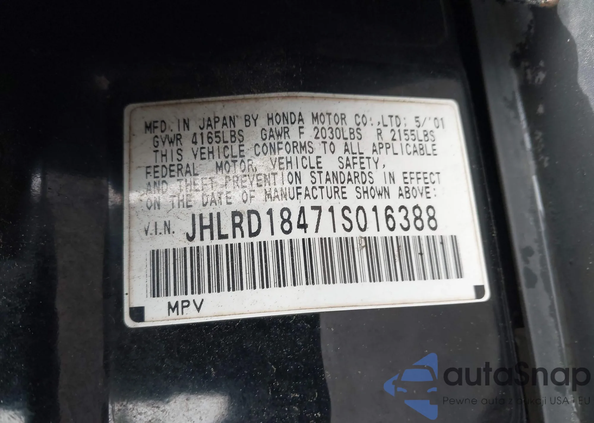 Honda CR-V 2001 – Historia pojazdu (sprzedany na IAAI)
