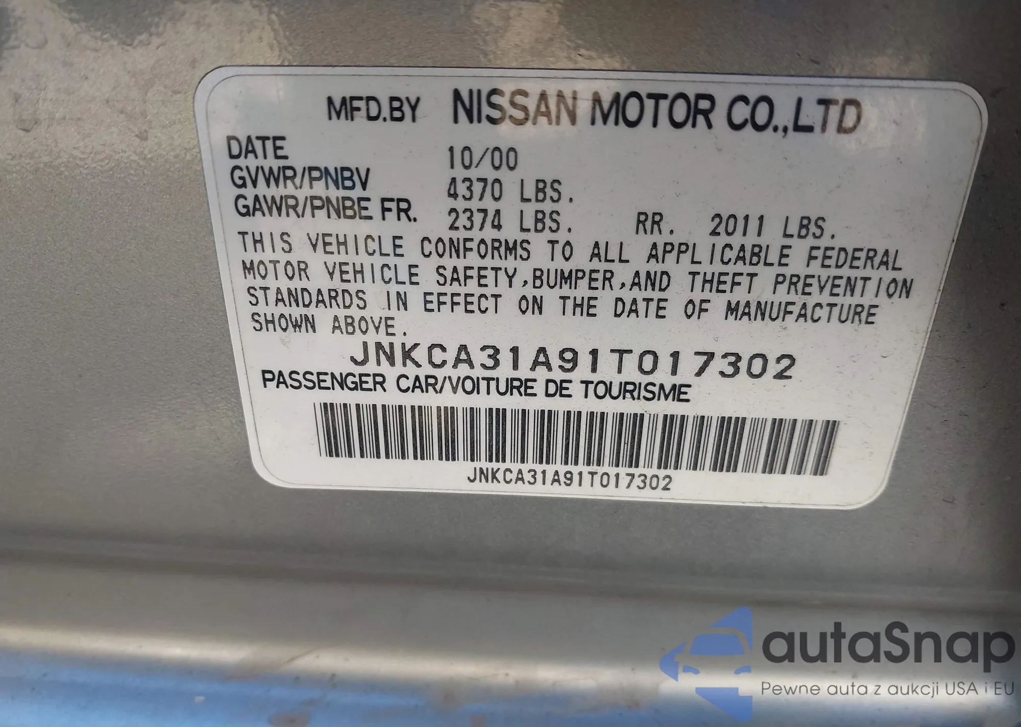 VIN: JNKCA31A91T017302