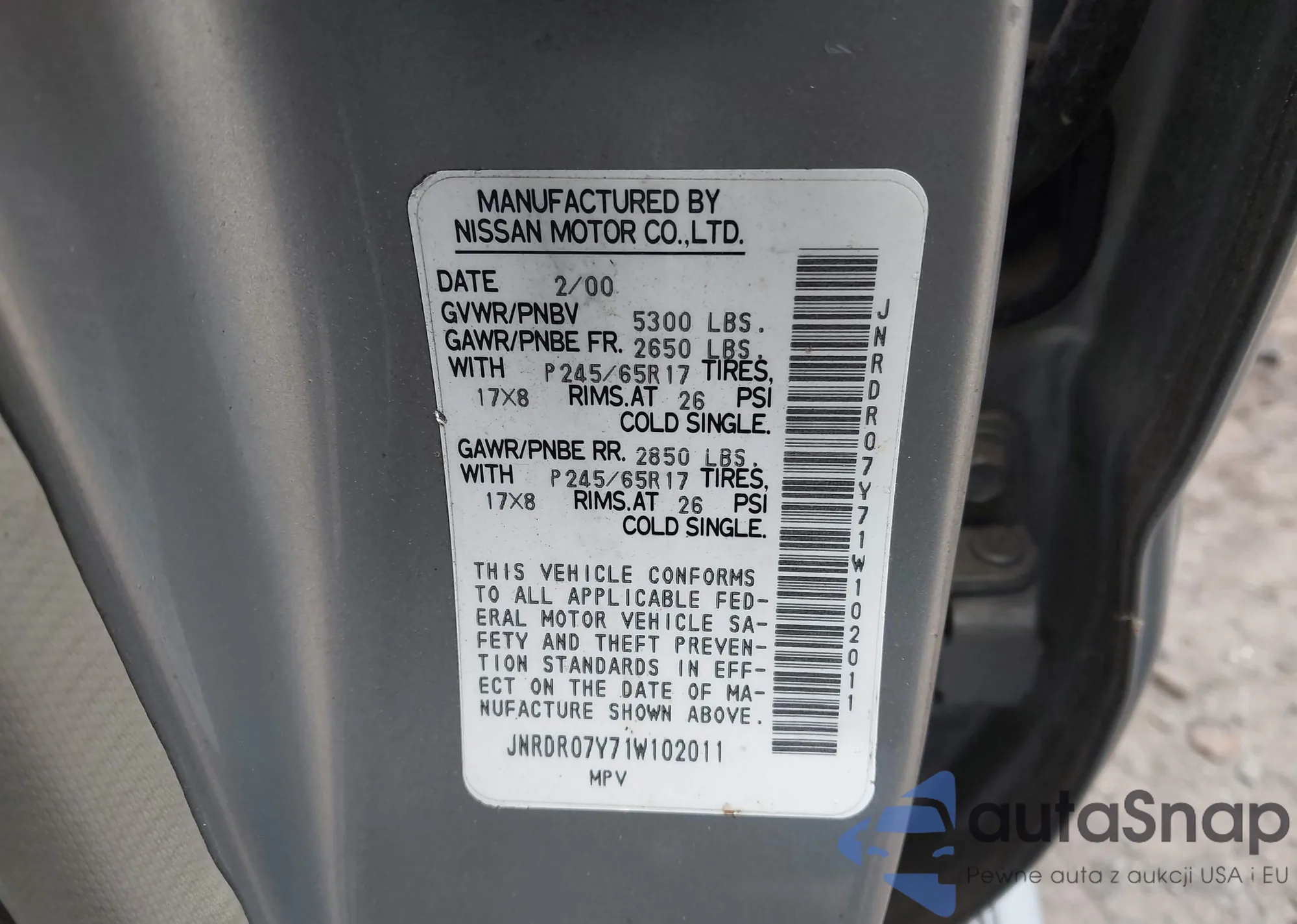 VIN: JNRDR07Y71W102011
