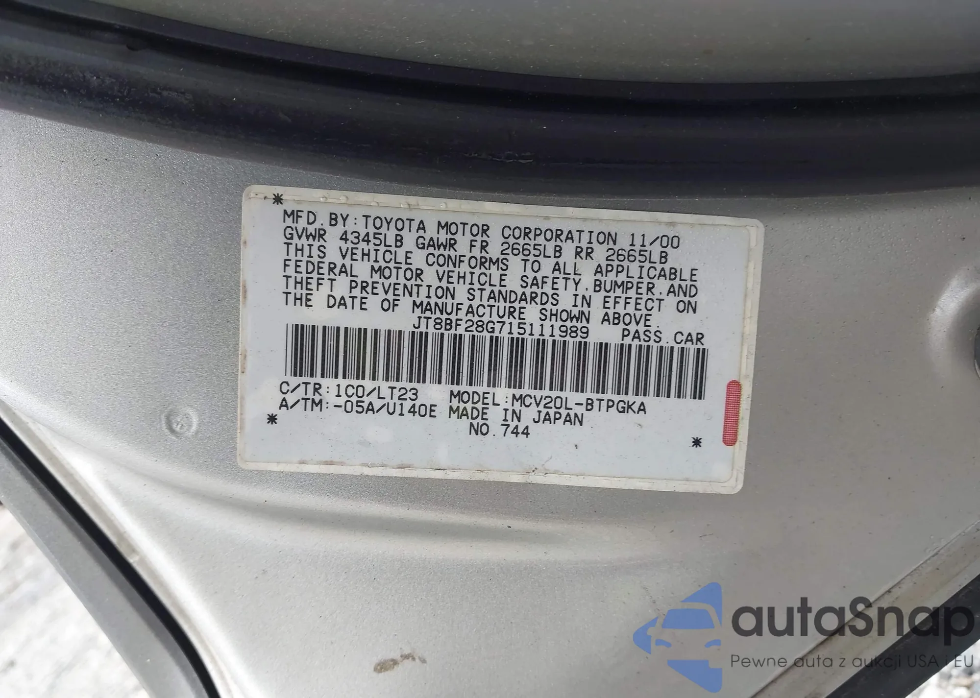 VIN: JT8BF28G715111989