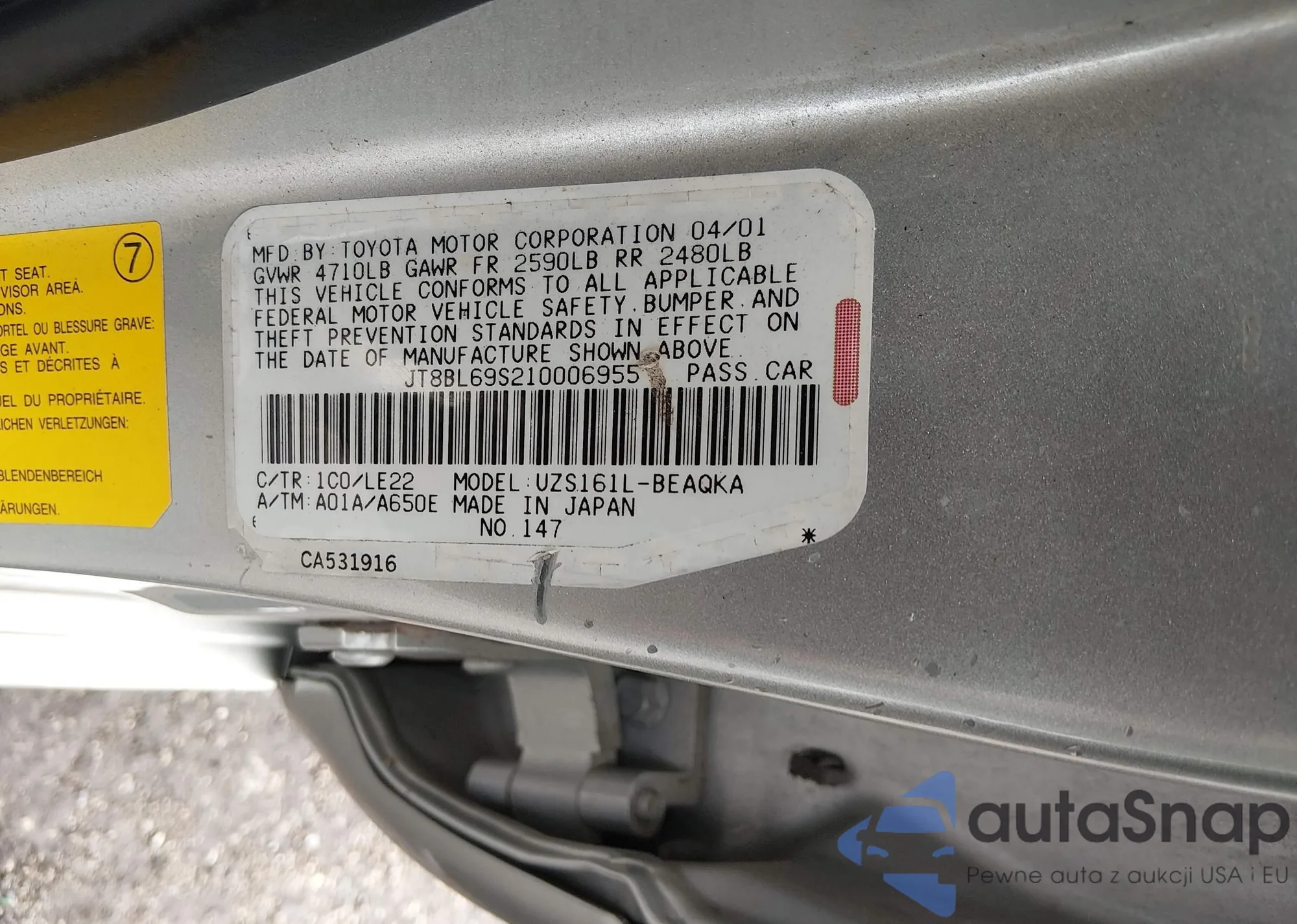 • VIN: JT8BL69S210006955