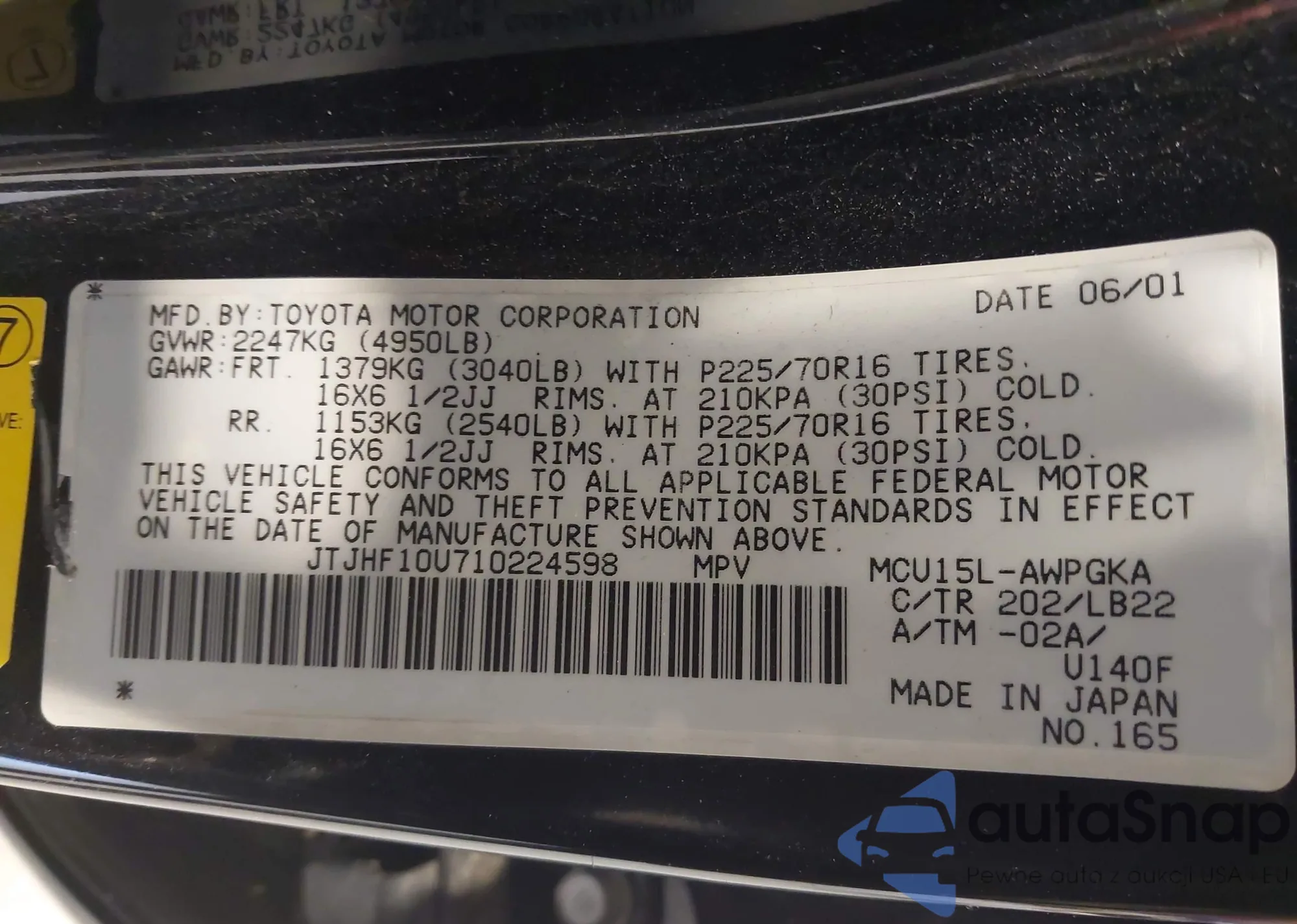 Samochód Lexus RX 2001 (VIN JTJHF10U710224598) ma dokumenty uniemożliwiające rejestrację. Mogą pojawić się trudności przy eksporcie i rejestracji. Skontaktuj się z ekspertami AutaSnap w celu znalezienia alternatywy.