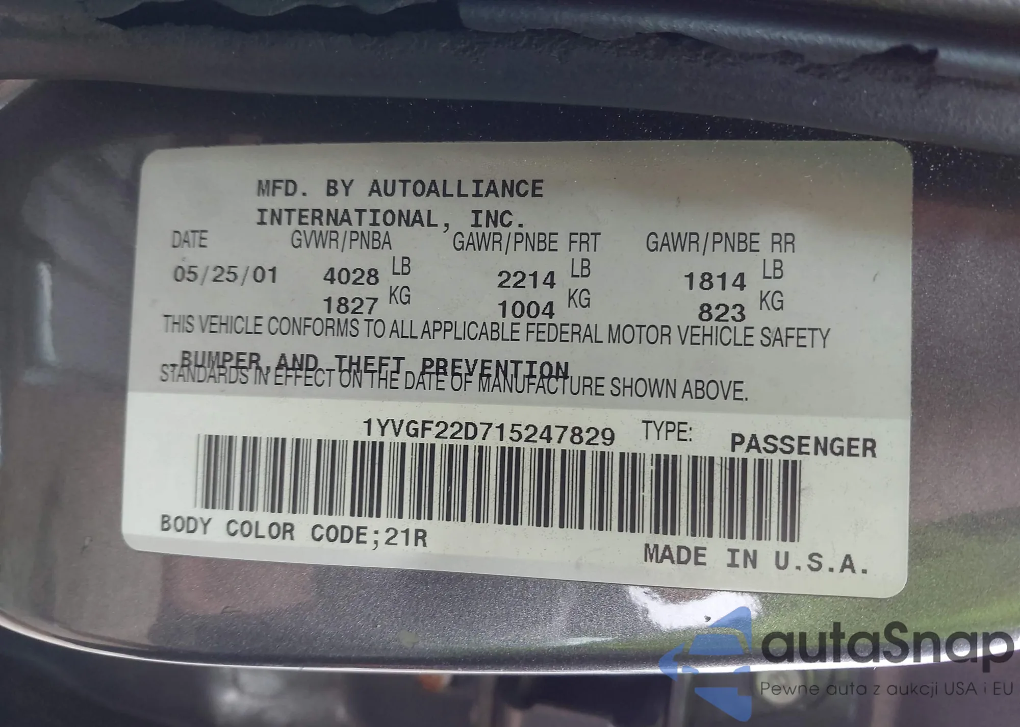 VIN: 1YVGF22D715247829