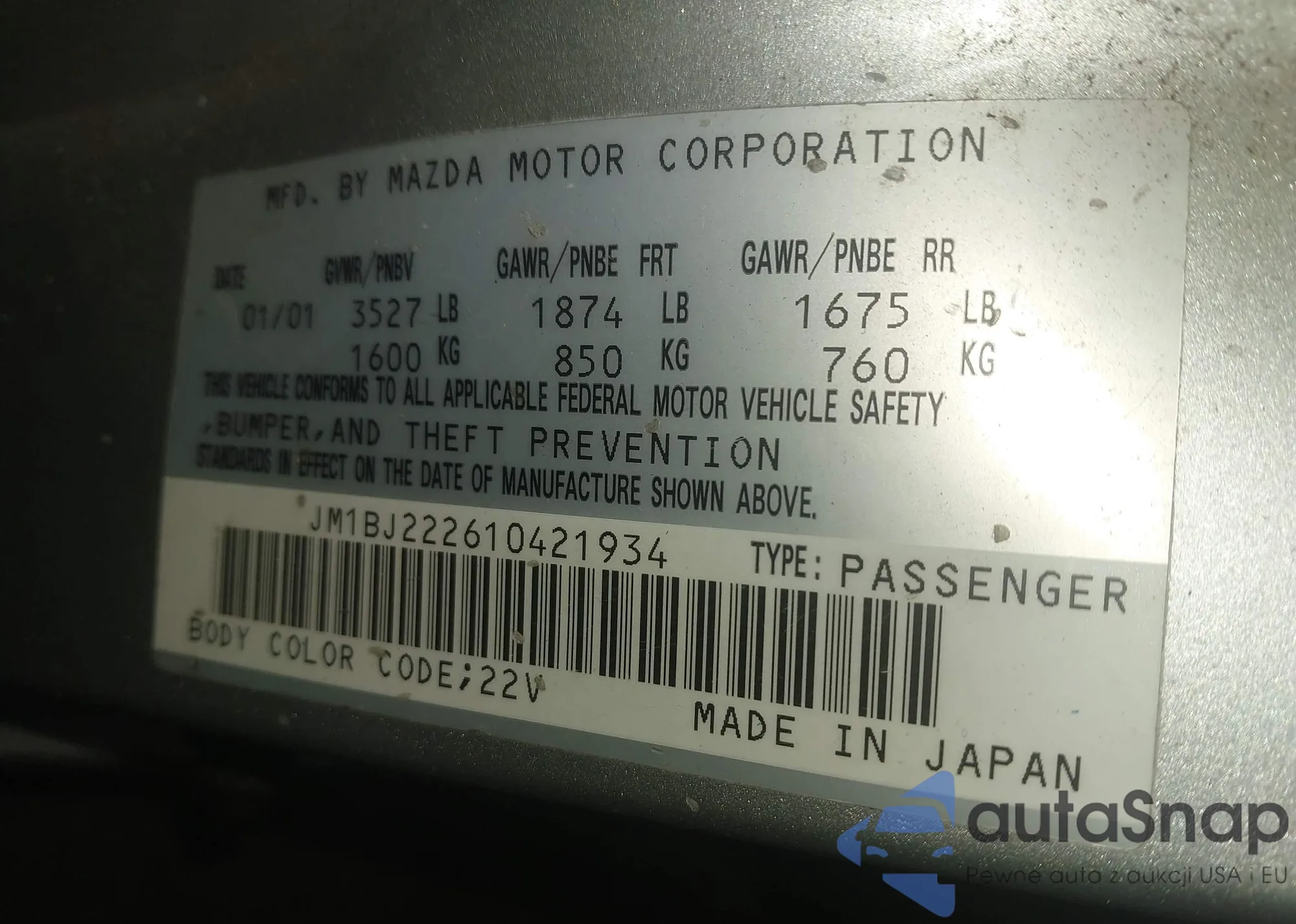 VIN: JM1BJ222610421934