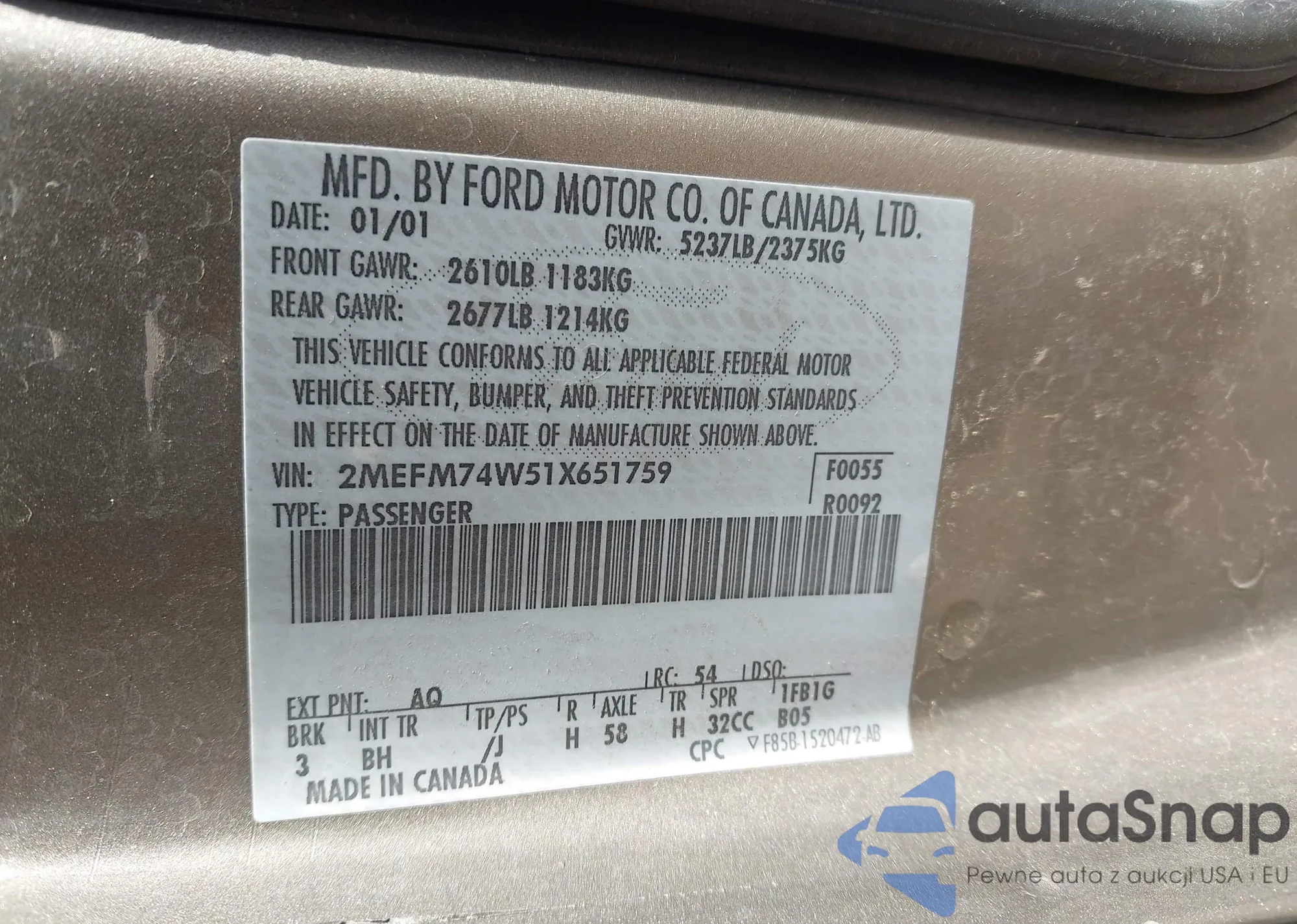 • VIN: 2MEFM74W51X651759