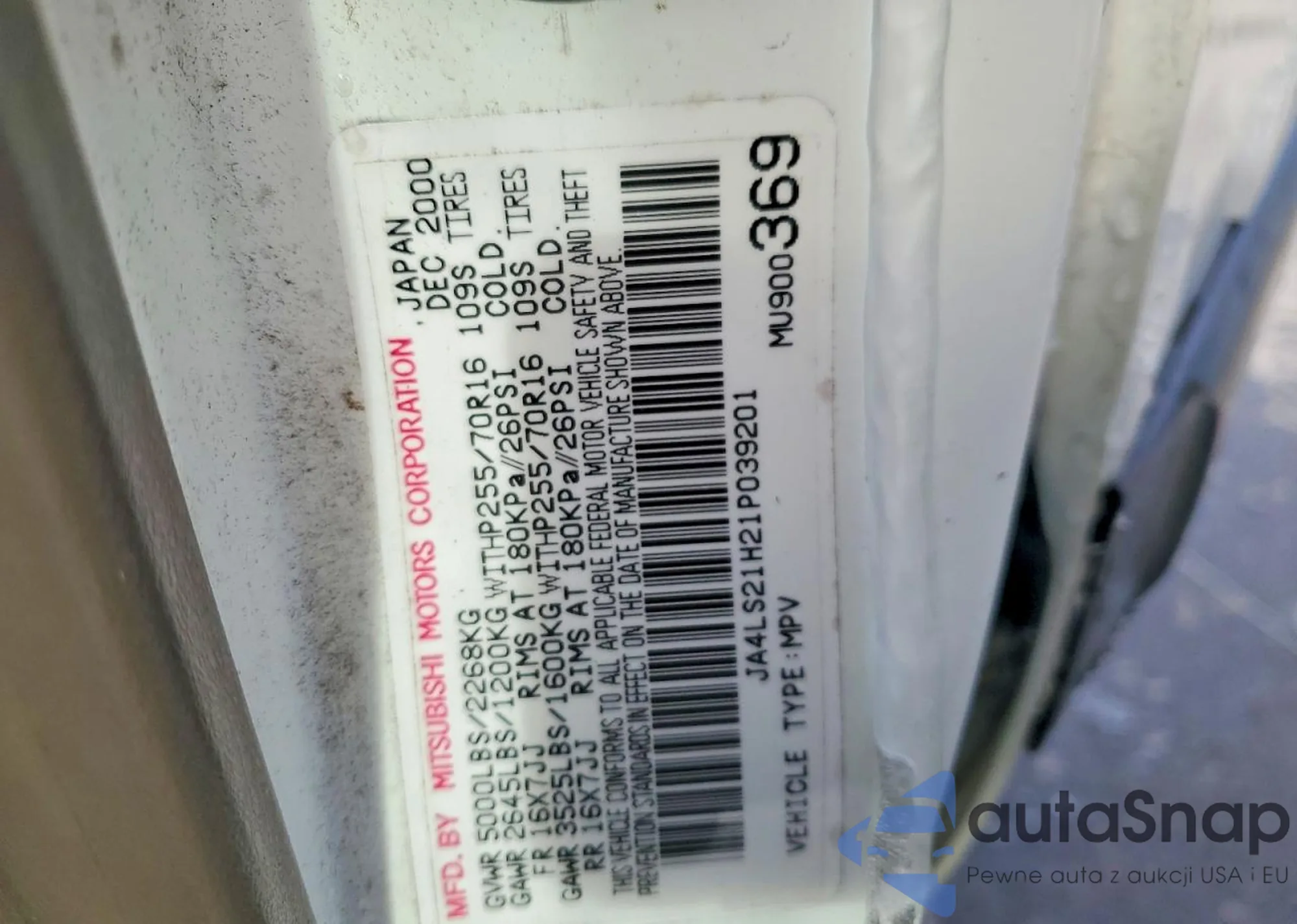 VIN: JA4LS21H21P039201