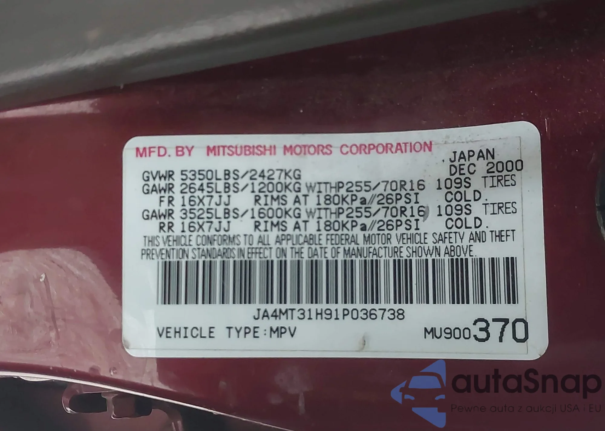 VIN: JA4MT31H91P036738