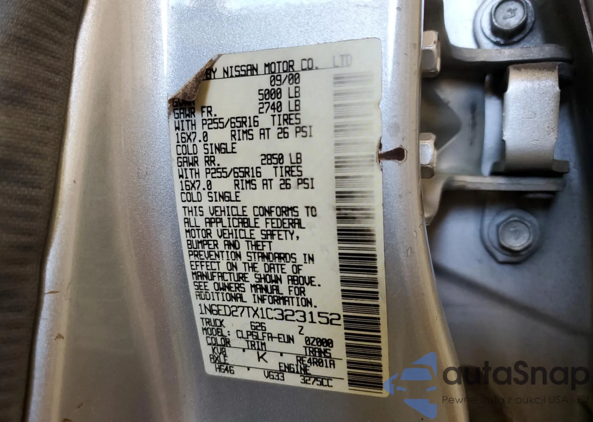 Samochód Nissan Navara (Frontier) 2001 (VIN 1N6ED27TX1C323152) nie był wcześniej licytowany. Dokumenty są czyste, przebieg odpowiada lub jest niższy niż średnia rynku. Sprzedaje go firma ubezpieczeniowa – polecamy zakup. Dostawa do portu zajmie ok. 6–8 tygodni.