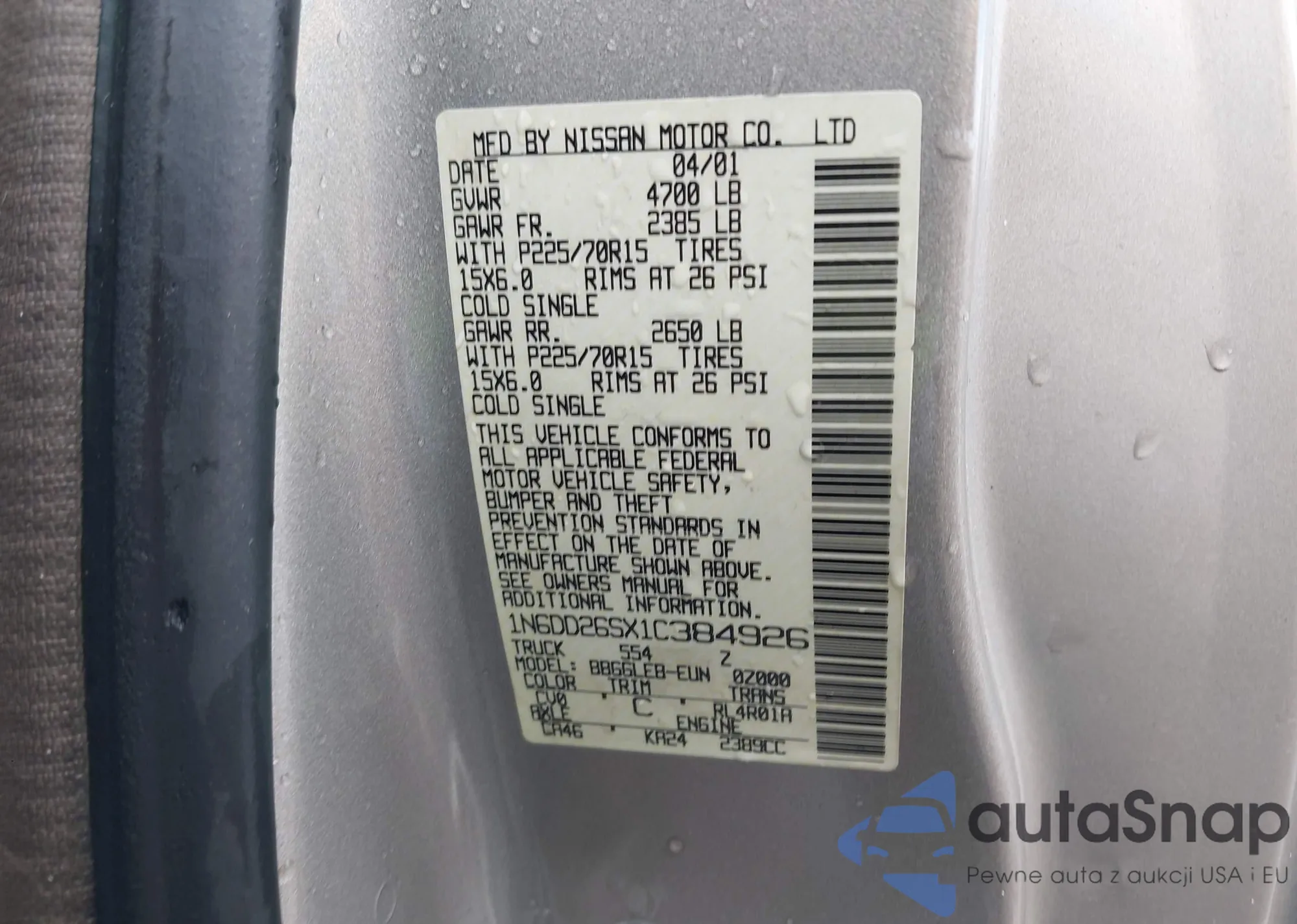 VIN: 1N6DD26SX1C384926