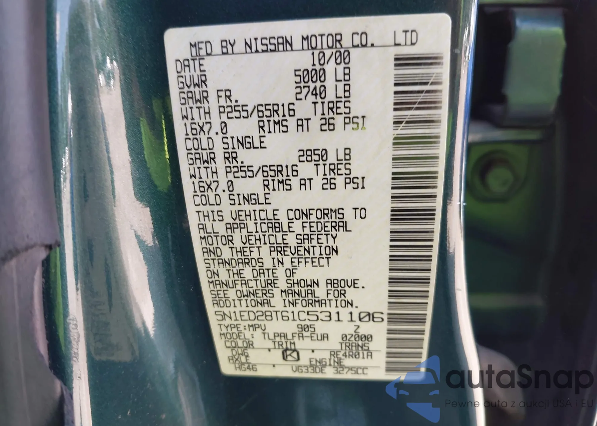 VIN: 5N1ED28T61C531106
