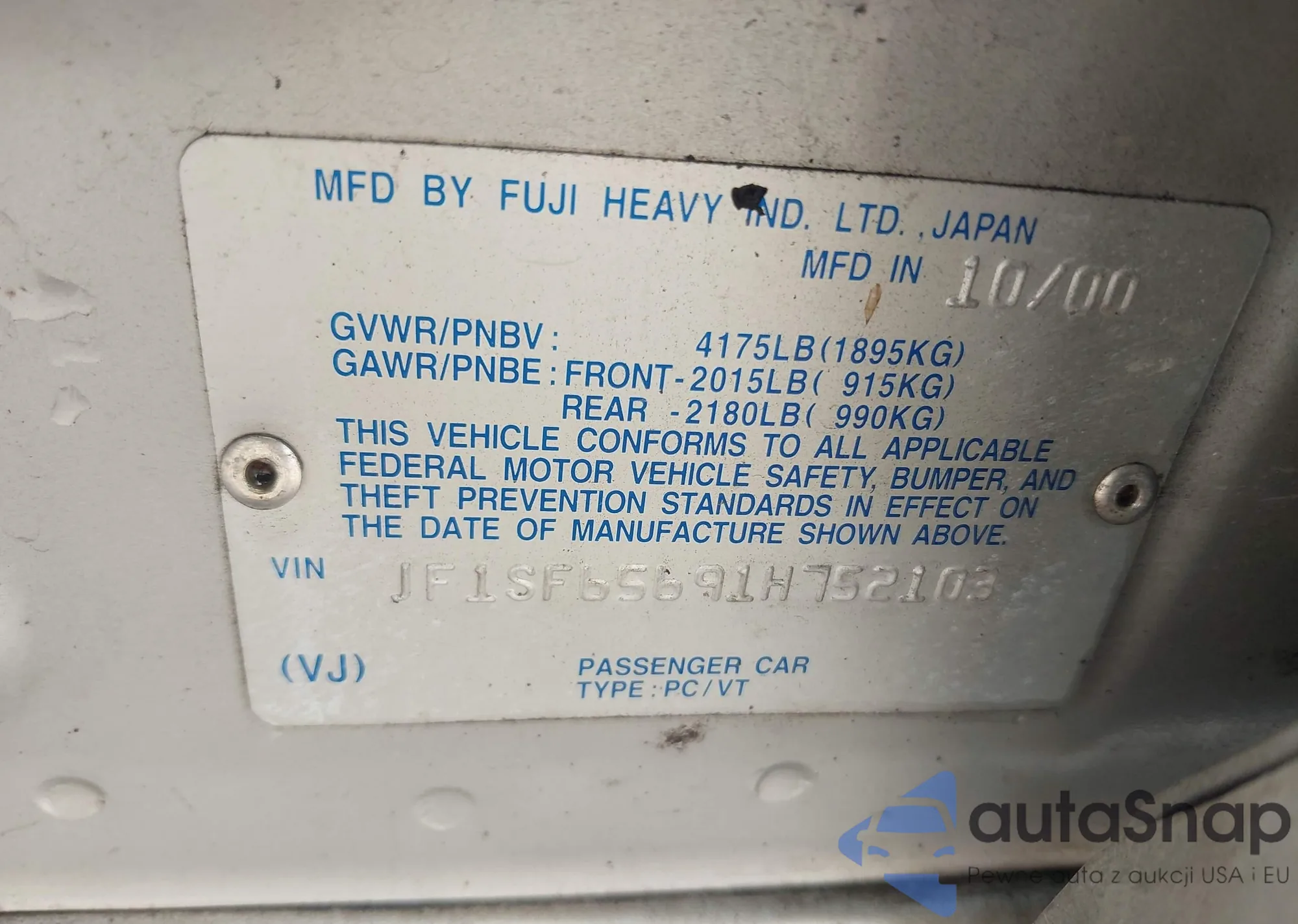VIN: JF1SF65691H752103