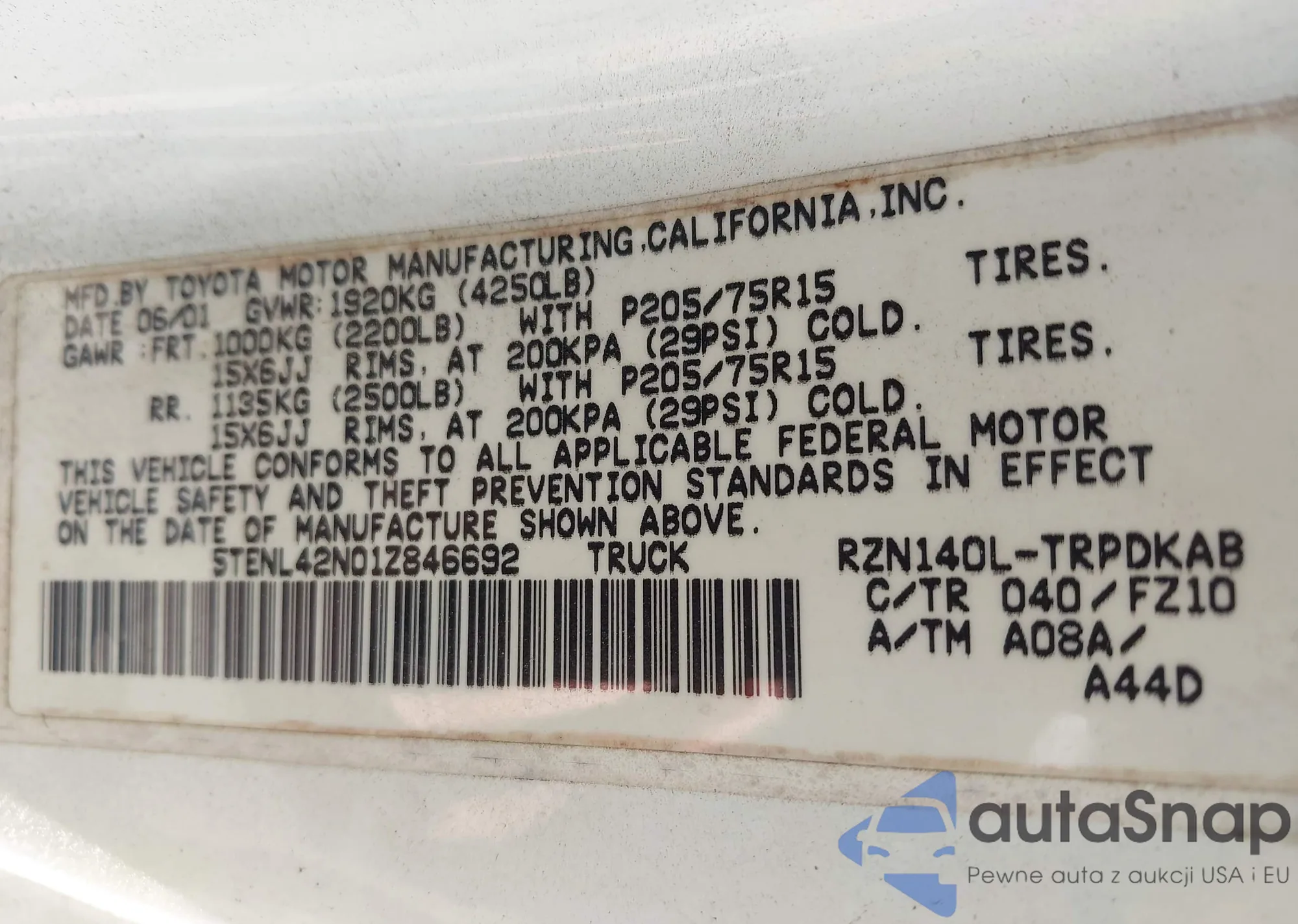 VIN: 5TENL42N01Z846692