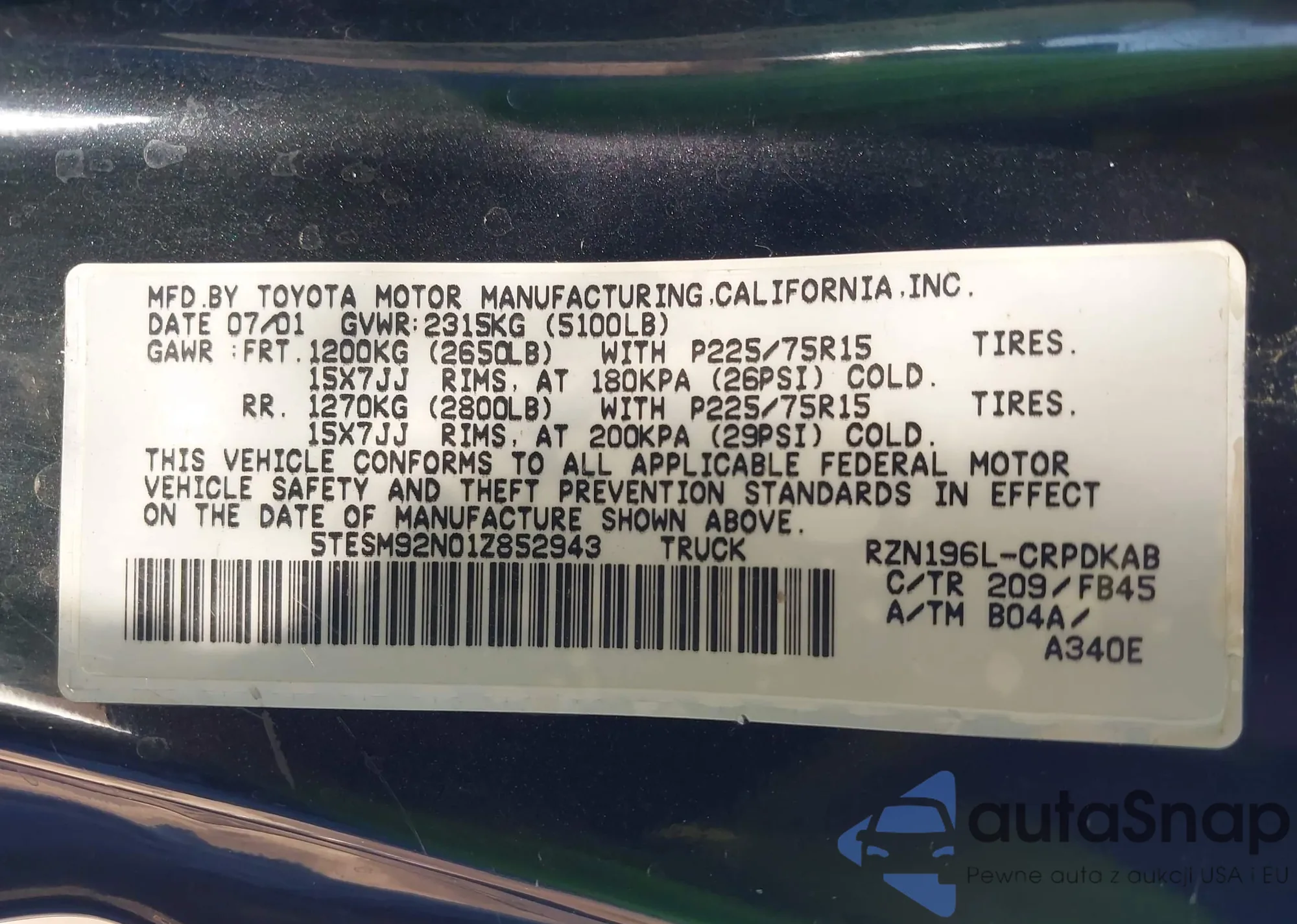 Marka: 2001 Toyota Tacoma Pr...