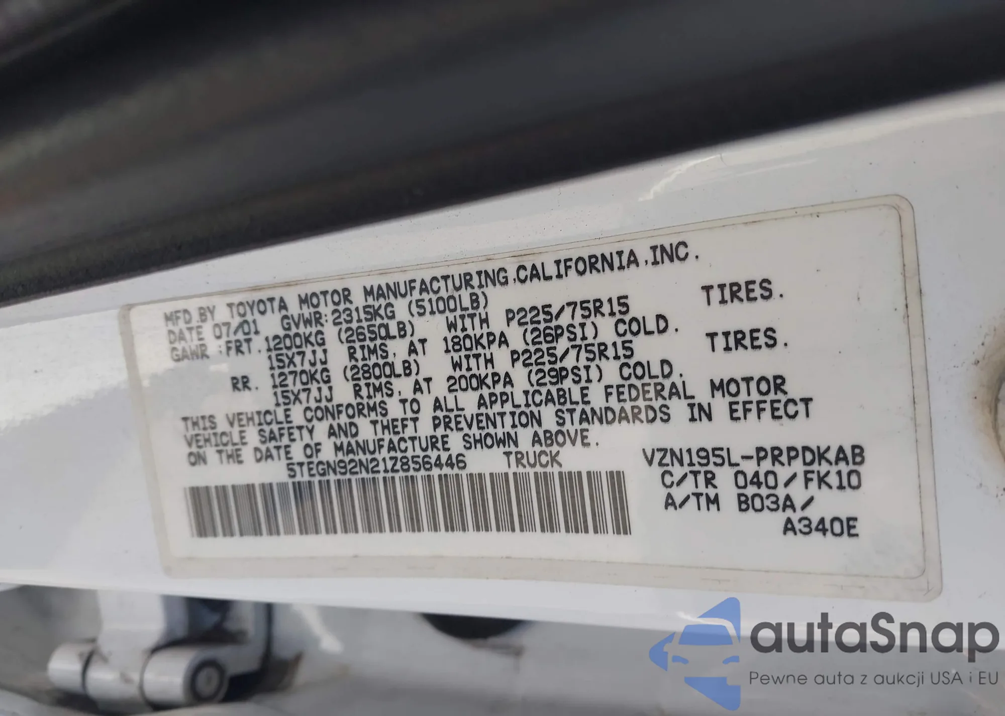 • VIN: 5TEGN92N21Z856446