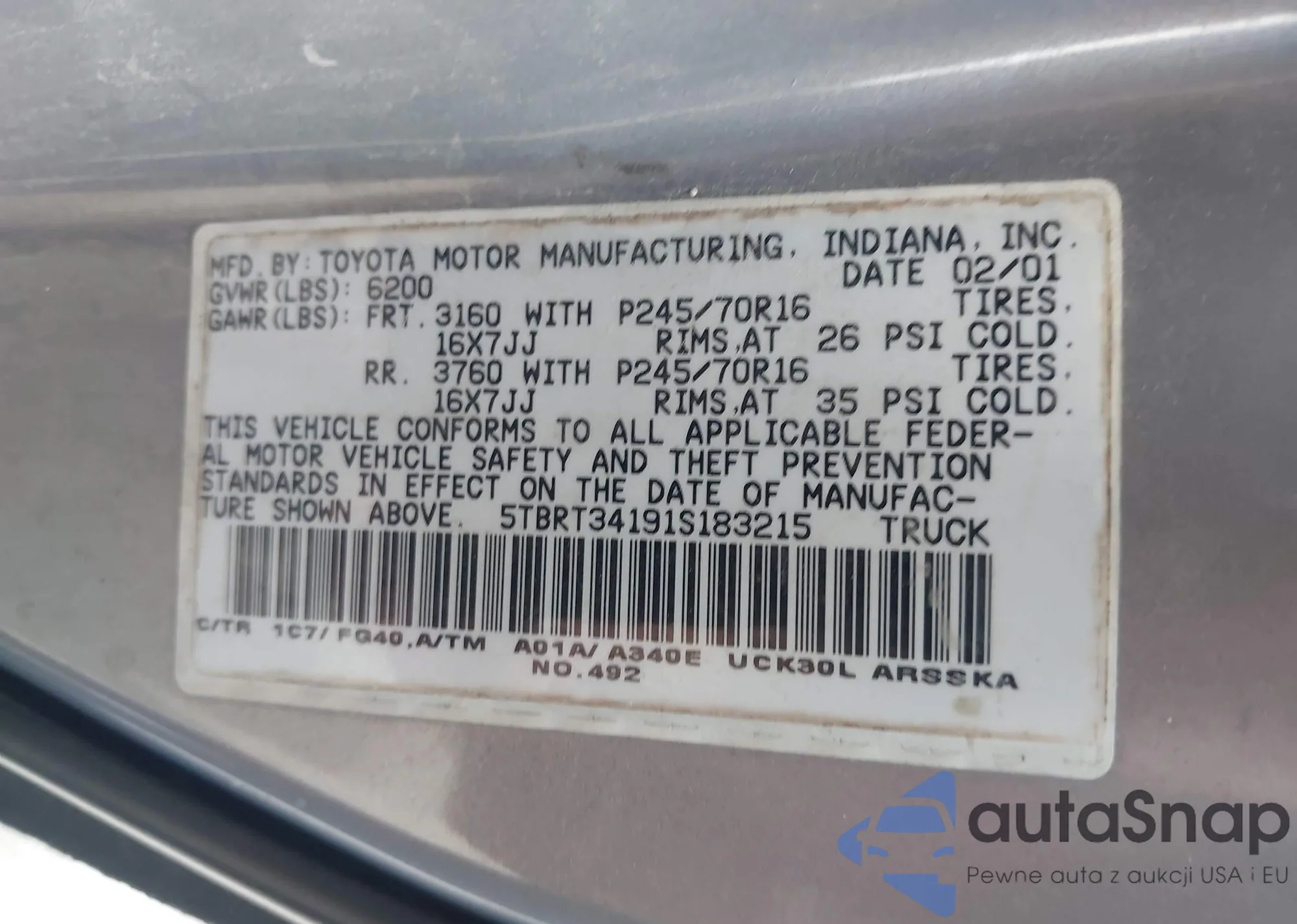 • VIN: 5TBRT34191S183215