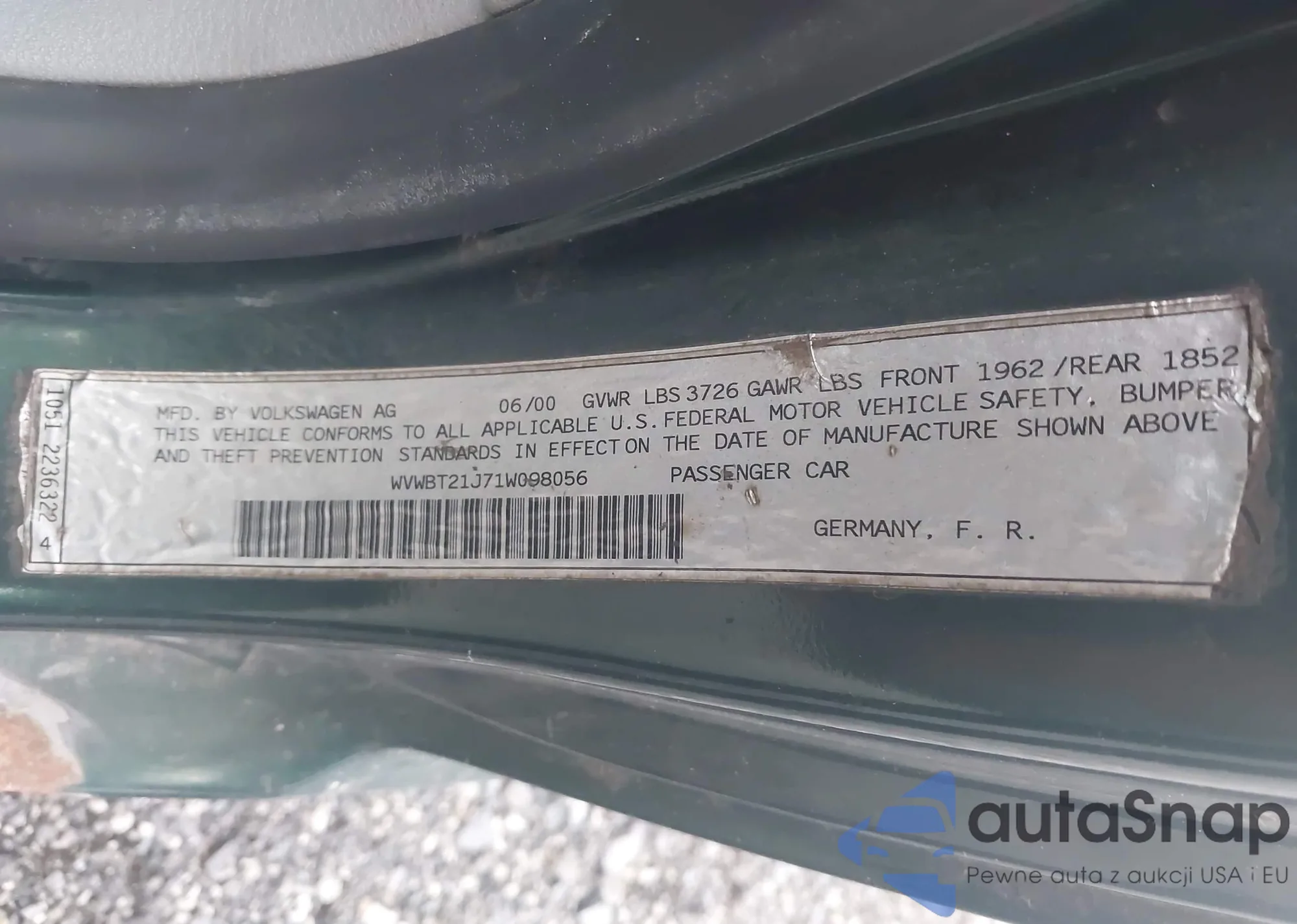 • VIN: WVWBT21J71W098056