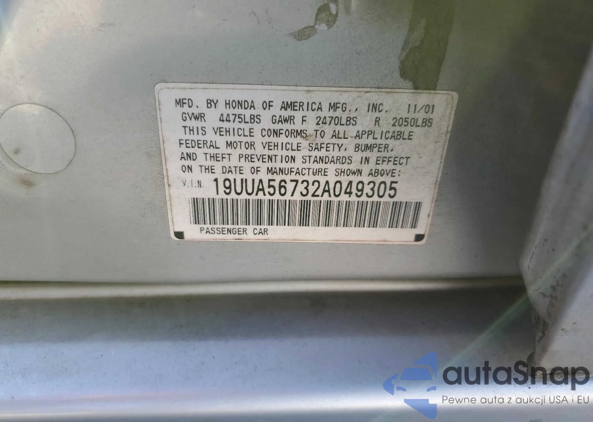 • VIN: 19UUA56732A049305