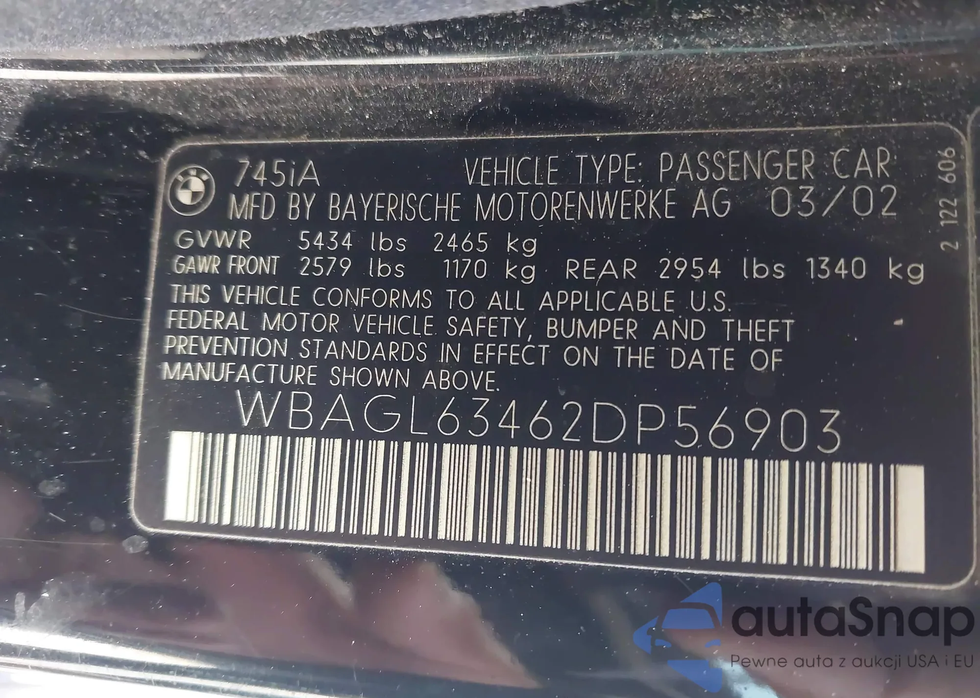 VIN: WBAGL63462DP56903