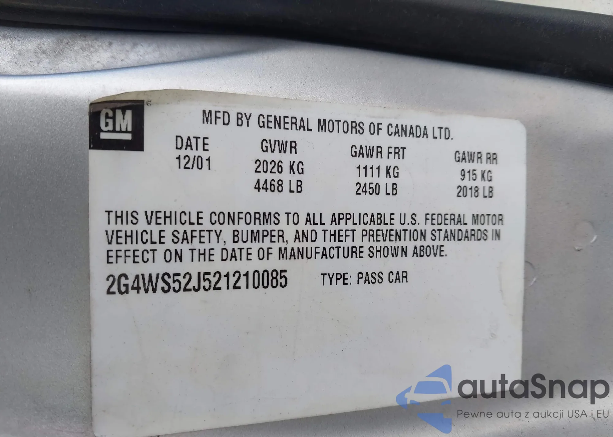 • VIN: 2G4WS52J521210085