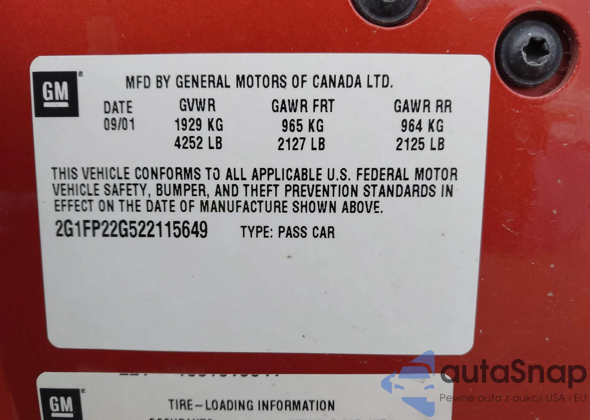 • VIN: 2G1FP22G522115649