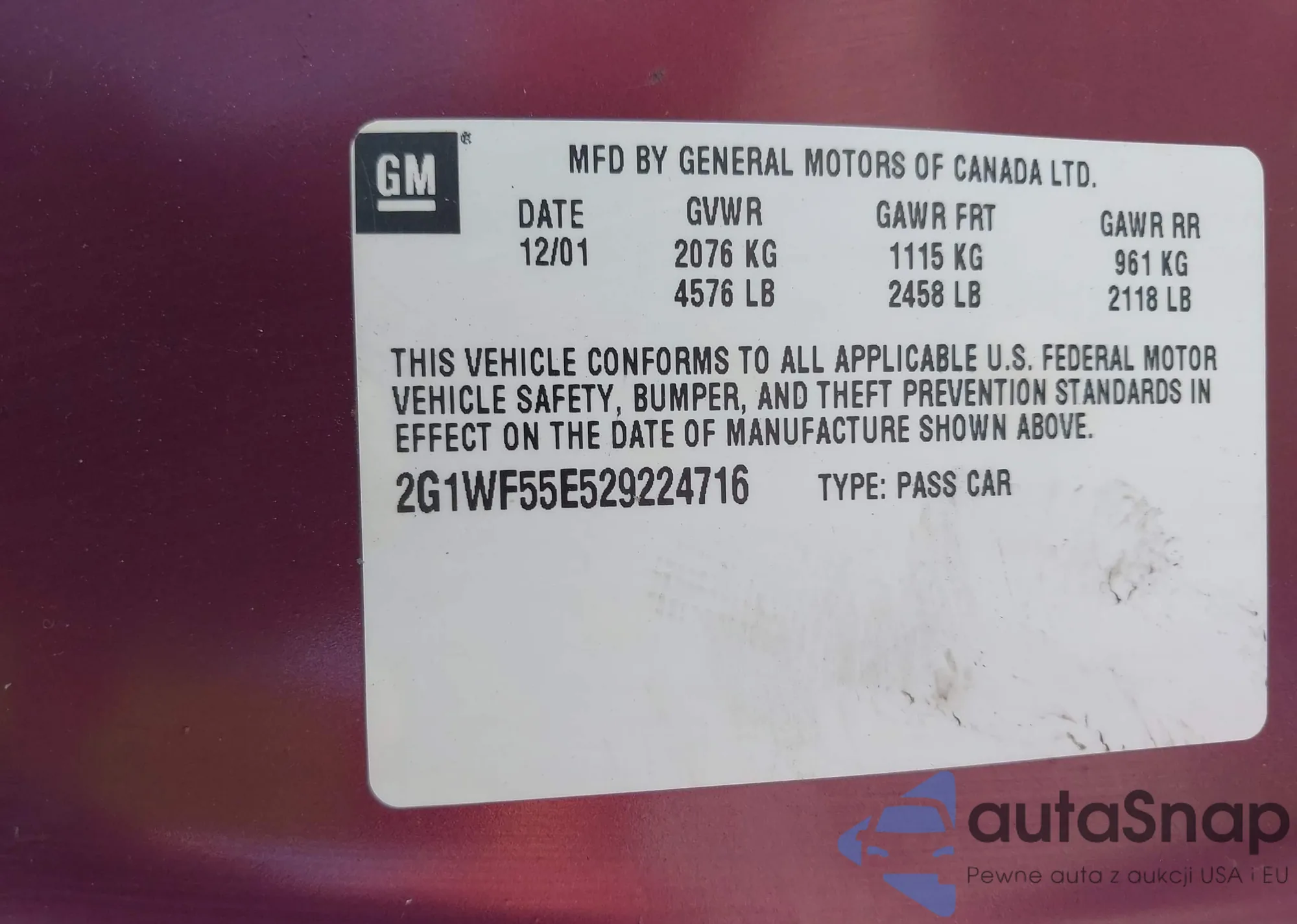 VIN: 2G1WF55E529224716