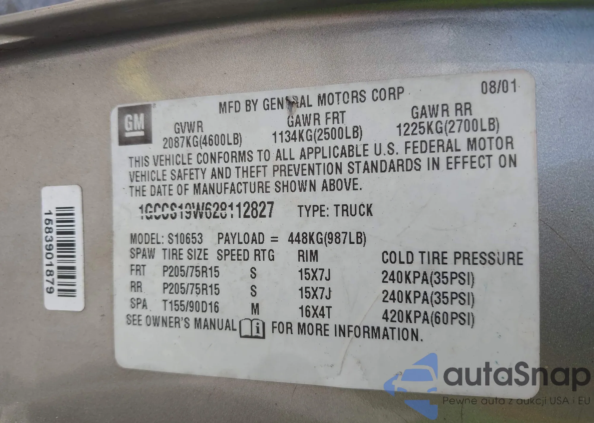 Samochód Chevrolet S-10 Pickup 2002 (VIN 1GCCS19W628112827) sprzedaje go niezweryfikowany sprzedawca. Zalecamy raport Carfax i potwierdzenie możliwości rejestracji pojazdu przed zakupem.