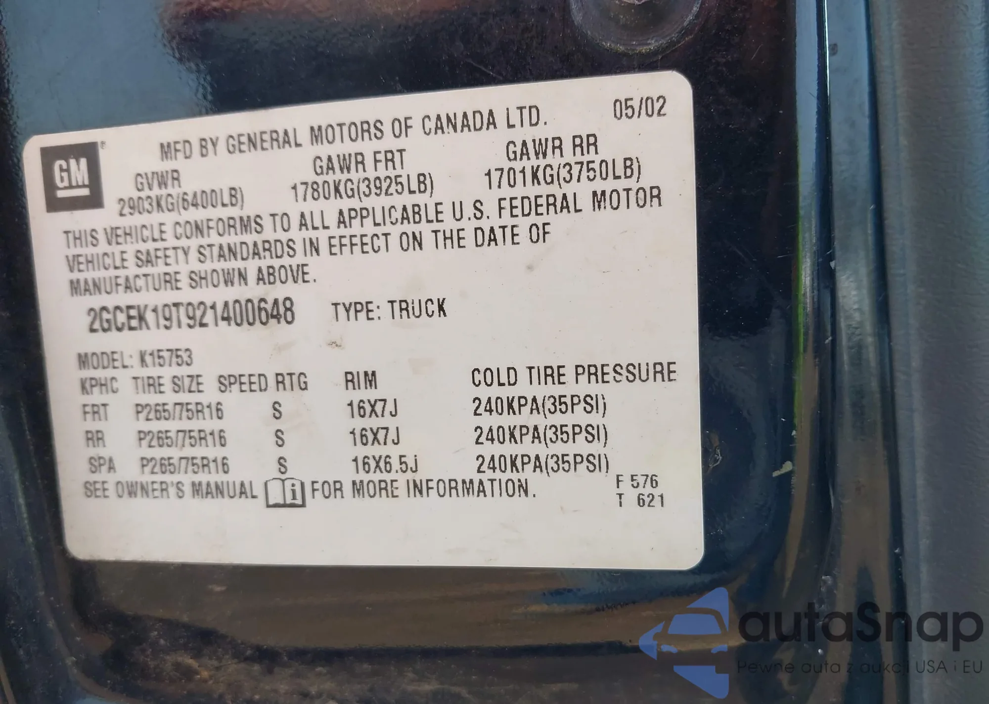 VIN: 2GCEK19T921400648