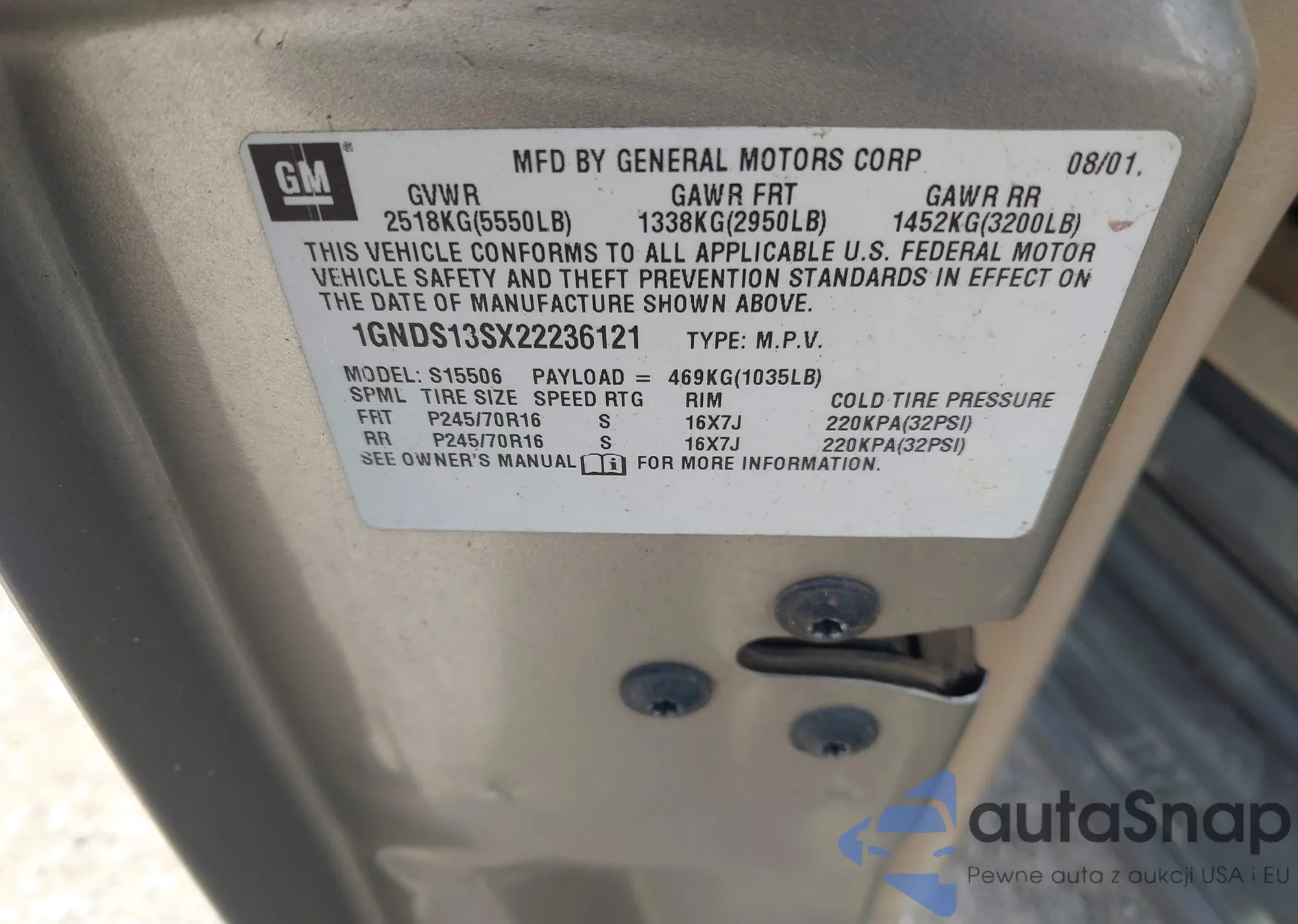 Samochód Chevrolet TrailBlazer 2002 (VIN 1GNDS13SX22236121) sprzedaje go niezweryfikowany sprzedawca. Zalecamy raport Carfax i potwierdzenie możliwości rejestracji pojazdu przed zakupem.