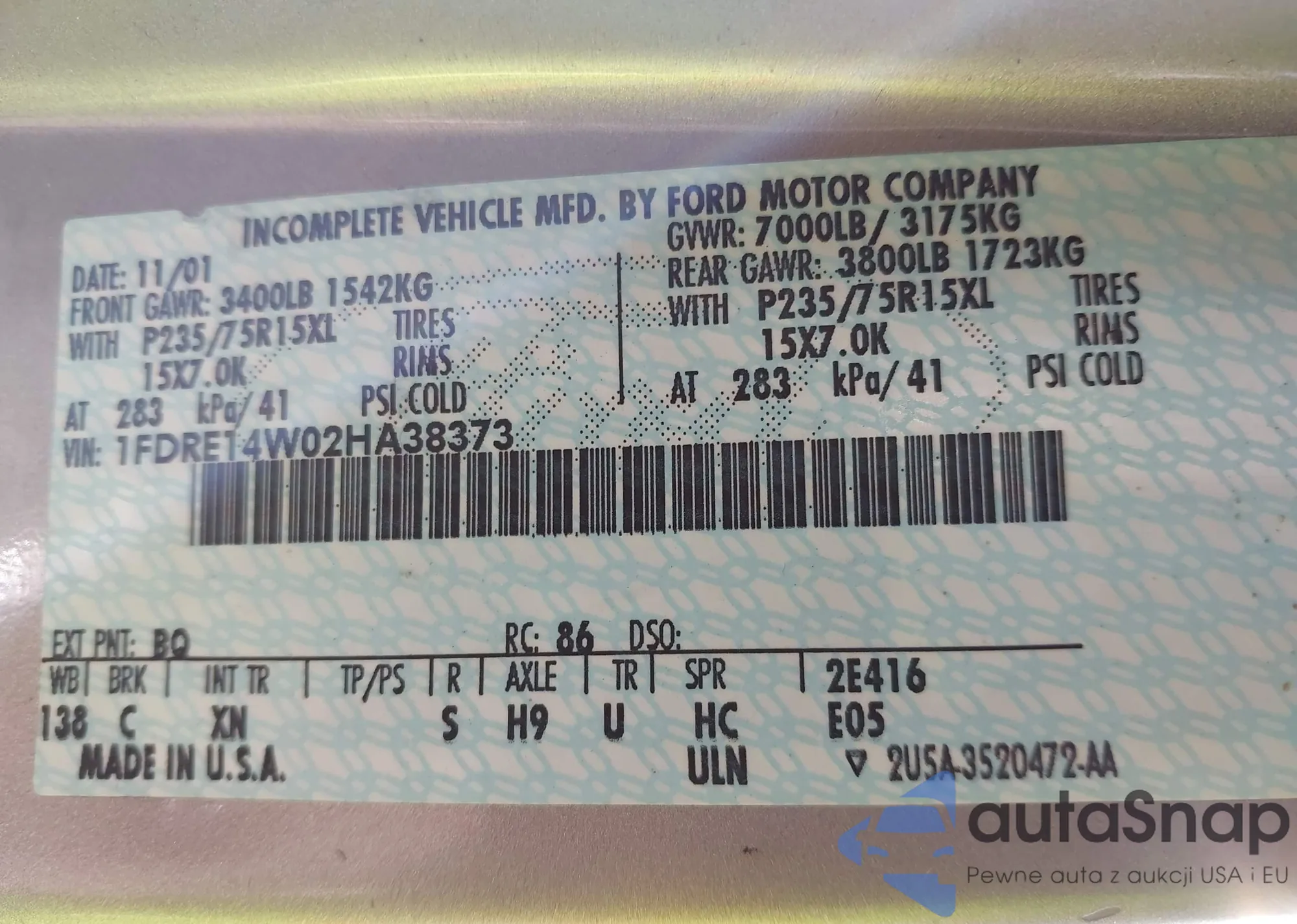 VIN: 1FDRE14W02HA38373