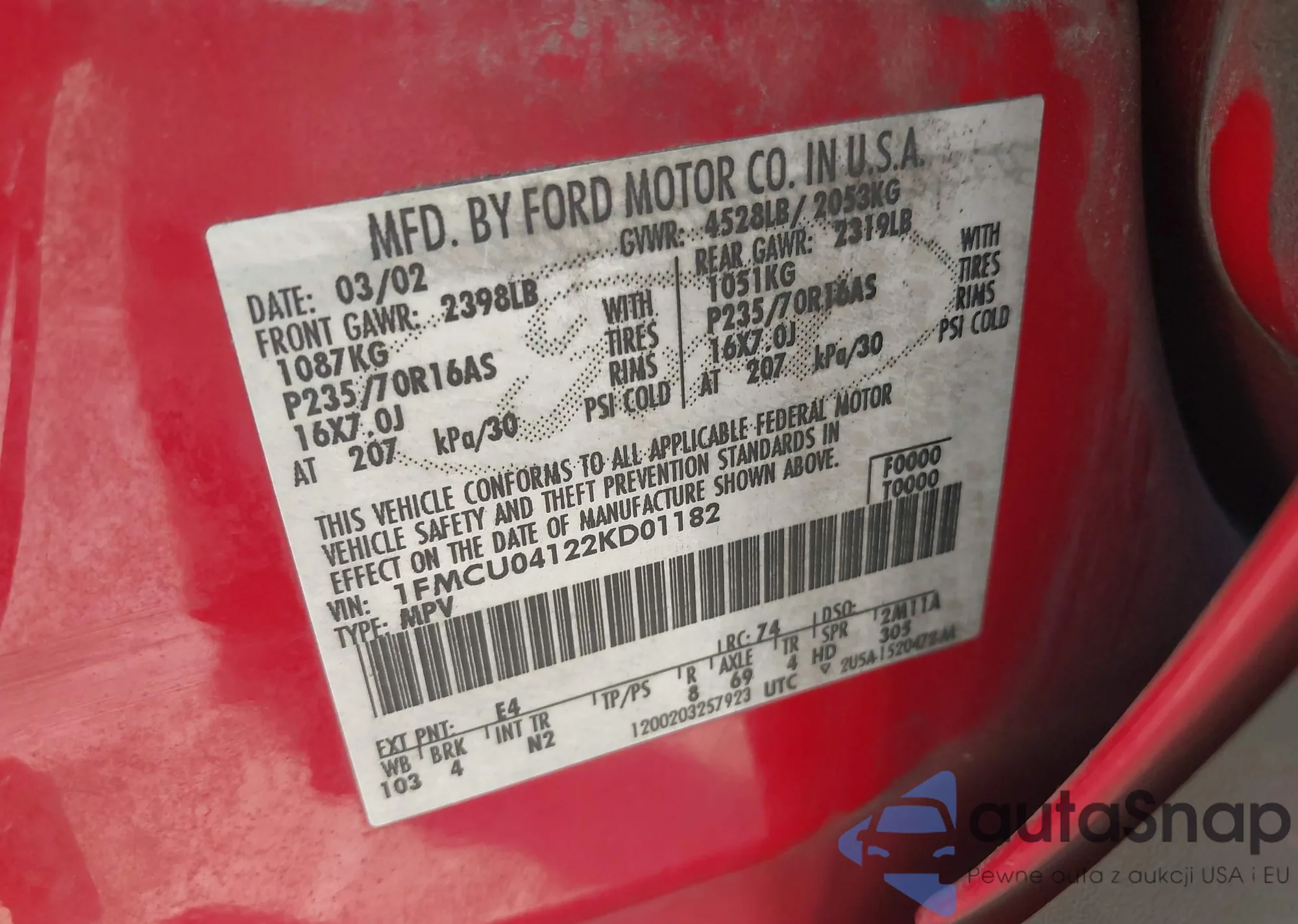 VIN: 1FMCU04122KD01182