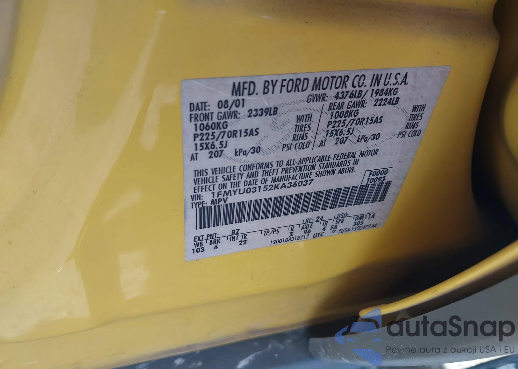 VIN: 1FMYU03152KA36037