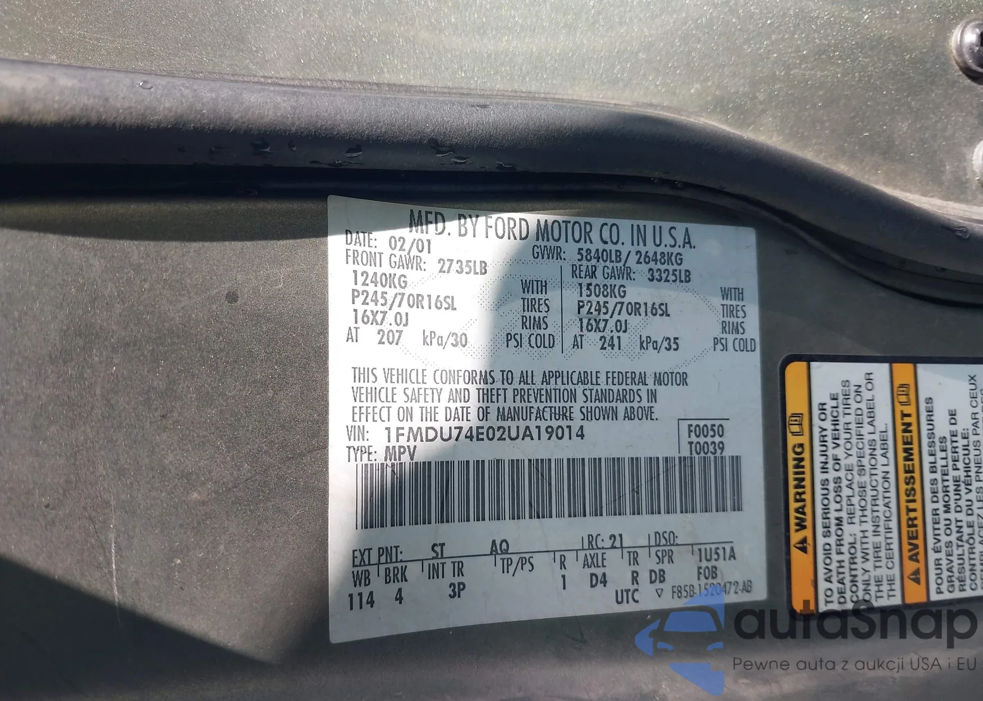 Samochód Ford Explorer 2002 (VIN 1FMDU74E02UA19014) nie był wcześniej licytowany. Dokumenty są czyste, przebieg odpowiada lub jest niższy niż średnia rynku. Sprzedaje go firma ubezpieczeniowa – polecamy zakup. Dostawa do portu zajmie ok. 6–8 tygodni.
