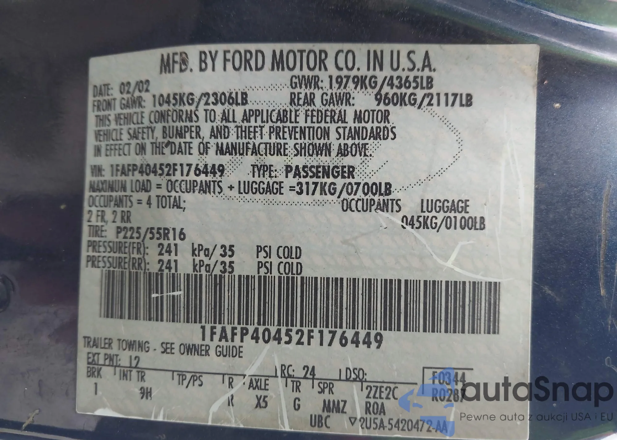 VIN: 1FAFP40452F176449