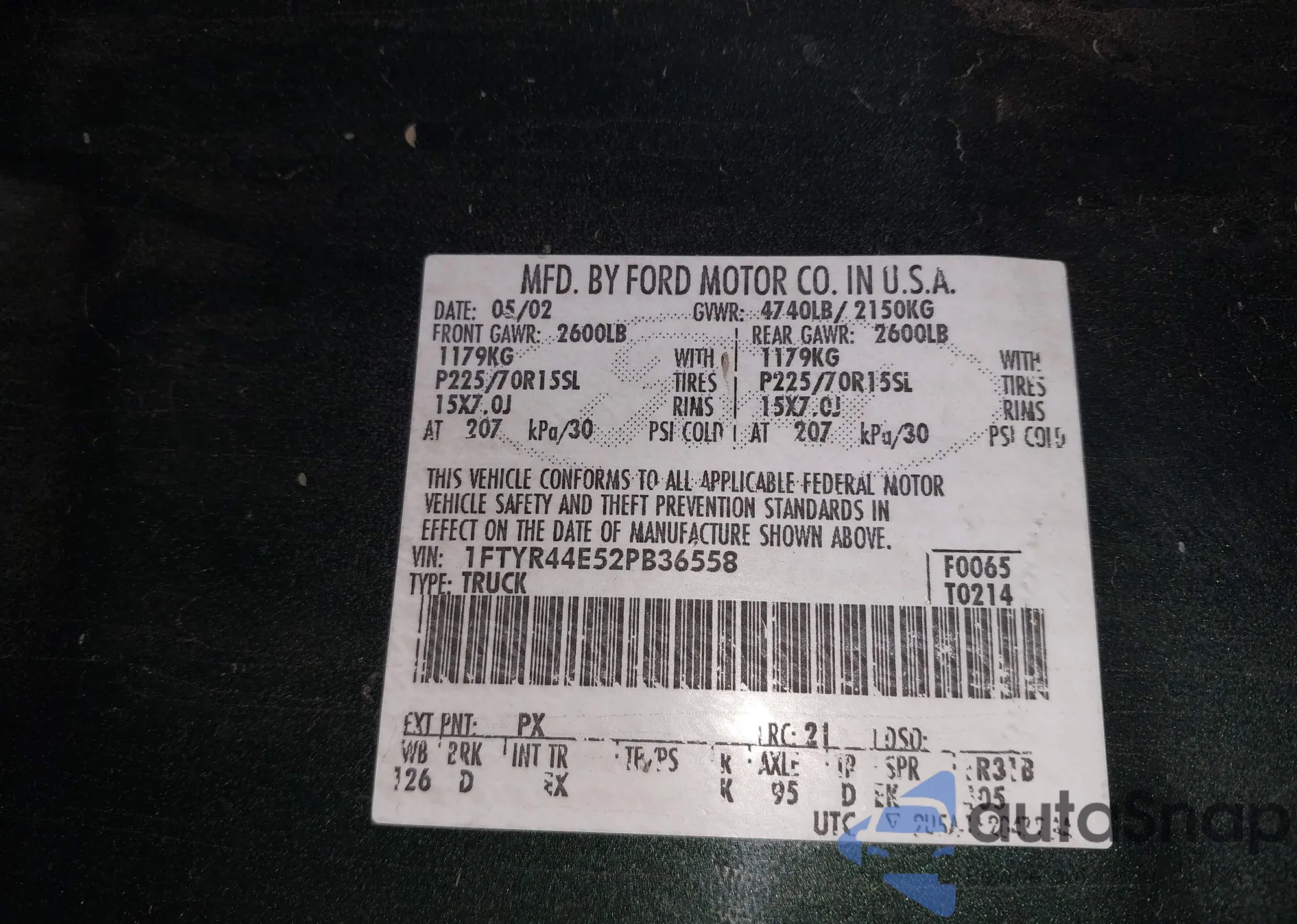 Samochód Ford Ranger 2002 (VIN 1FTYR44E52PB36558) nie był wcześniej licytowany. Dokumenty są czyste, przebieg odpowiada lub jest niższy niż średnia rynku. Sprzedaje go firma ubezpieczeniowa – polecamy zakup. Dostawa do portu zajmie ok. 6–8 tygodni.