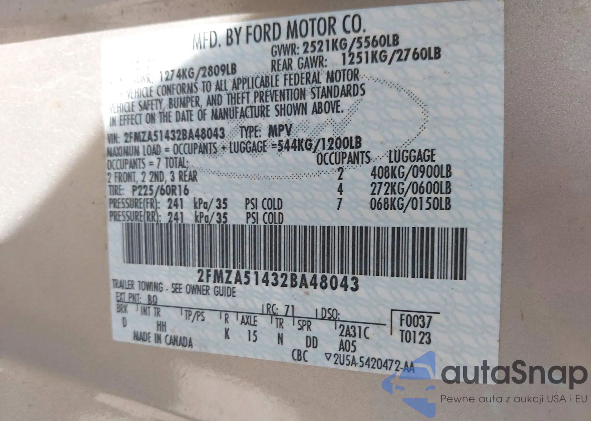 VIN: 2FMZA51432BA48043