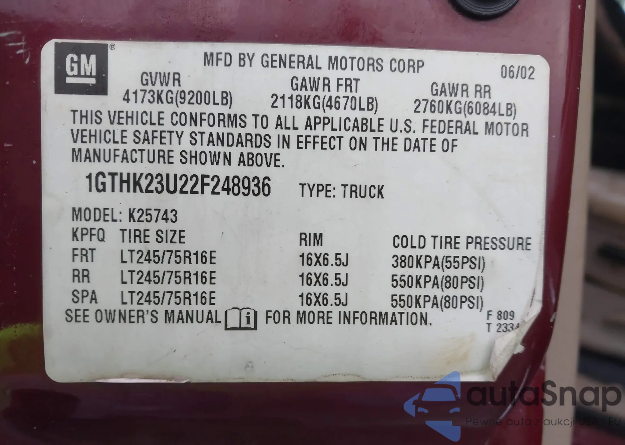 • VIN: 1GTHK23U22F248936