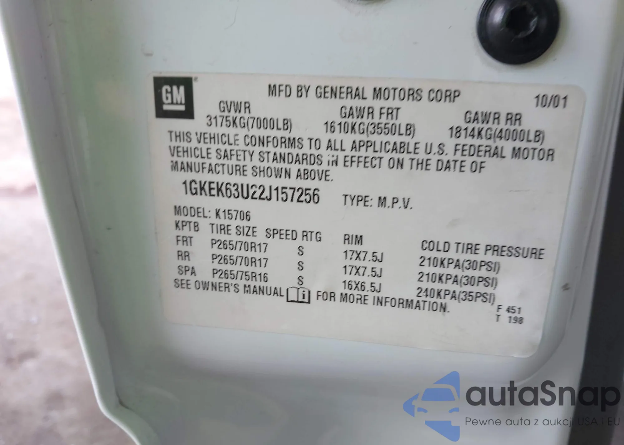 Samochód GMC Yukon 2002 (VIN 1GKEK63U22J157256) nie był wcześniej licytowany. Dokumenty są czyste, przebieg odpowiada lub jest niższy niż średnia rynku. Sprzedaje go firma ubezpieczeniowa – polecamy zakup. Dostawa do portu zajmie ok. 6–8 tygodni.
