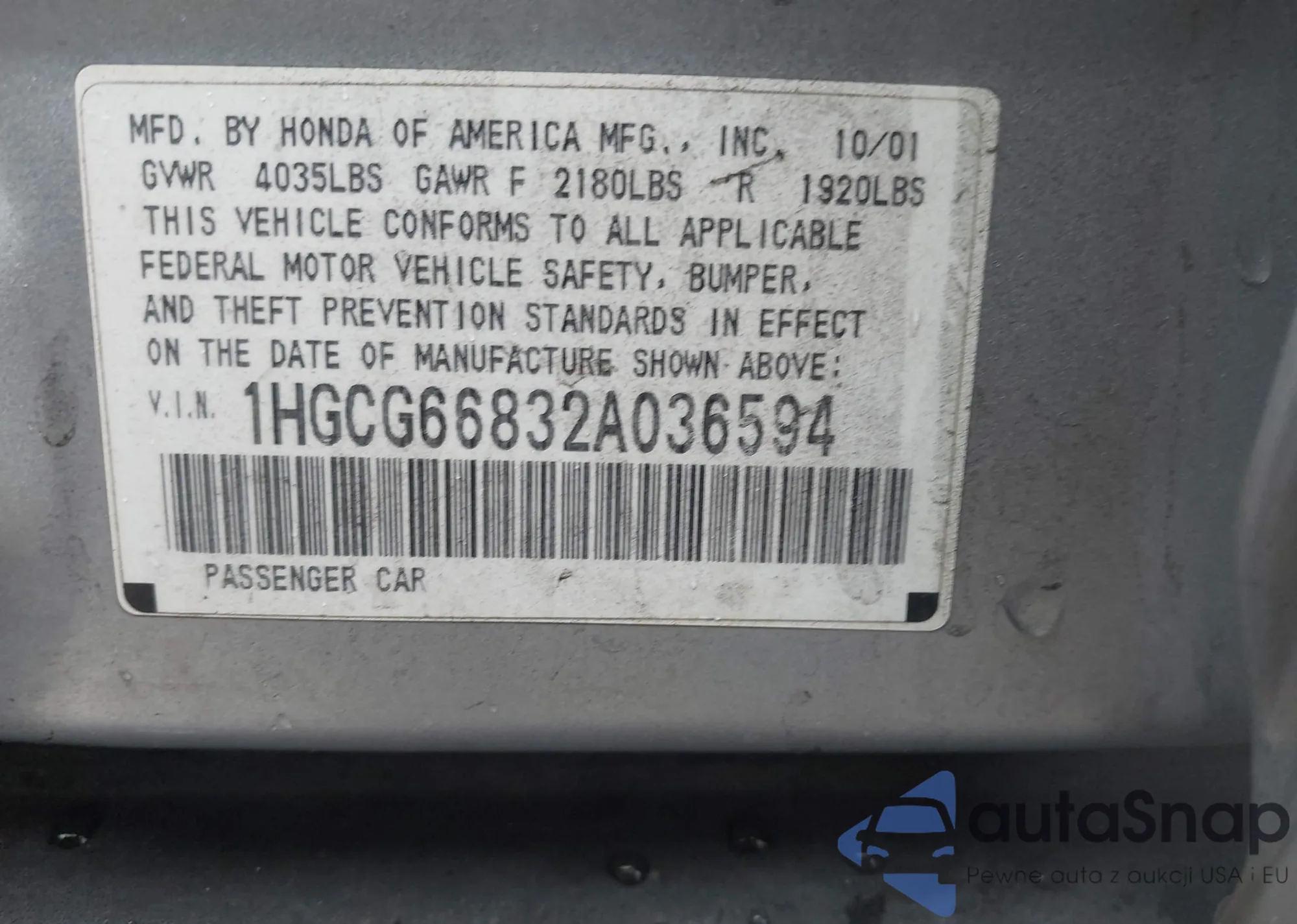 VIN: 1HGCG66832A036594