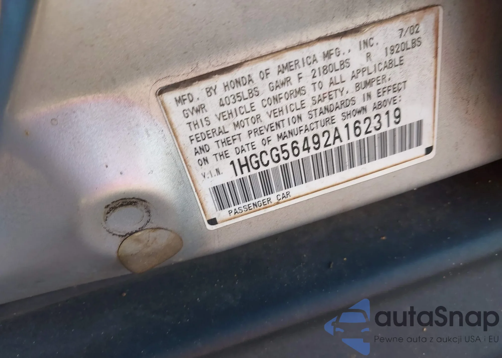 VIN: 1HGCG56492A162319