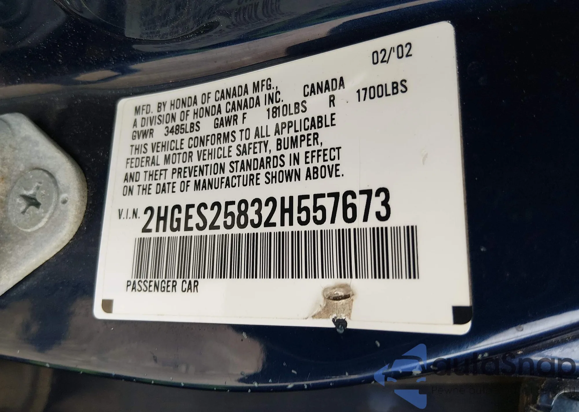 VIN: 2HGES25832H557673