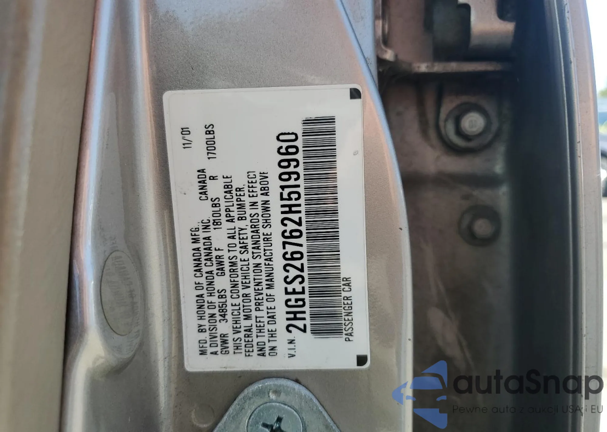 VIN: 2HGES26762H519960