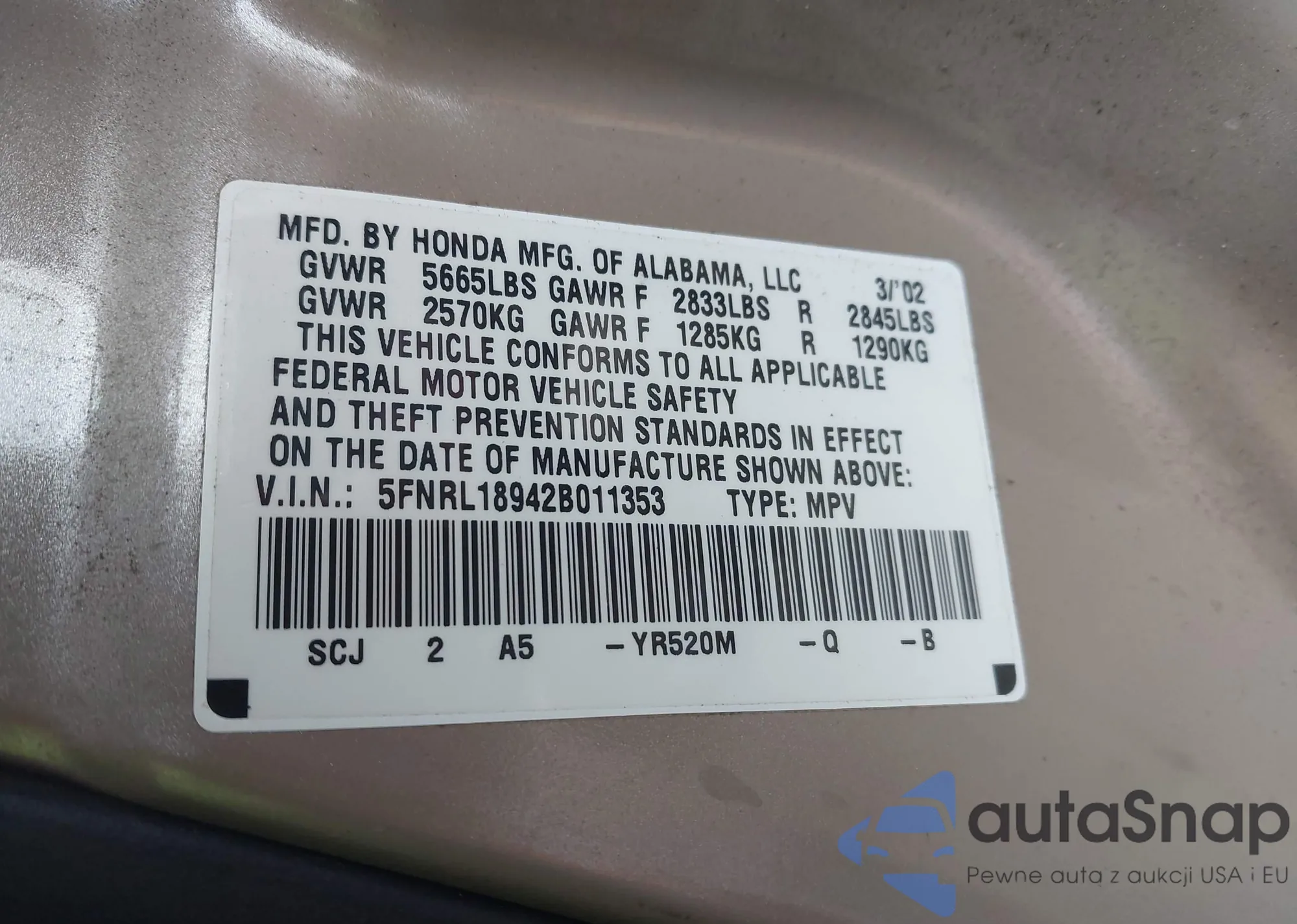 VIN: 5FNRL18942B011353