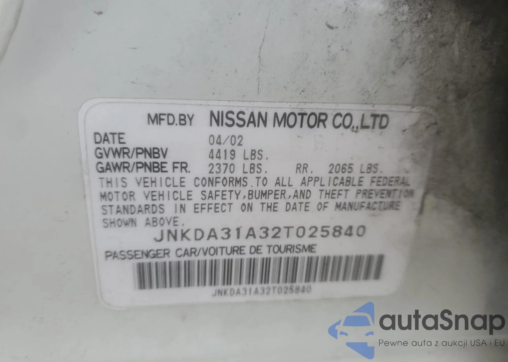 • VIN: JNKDA31A32T025840