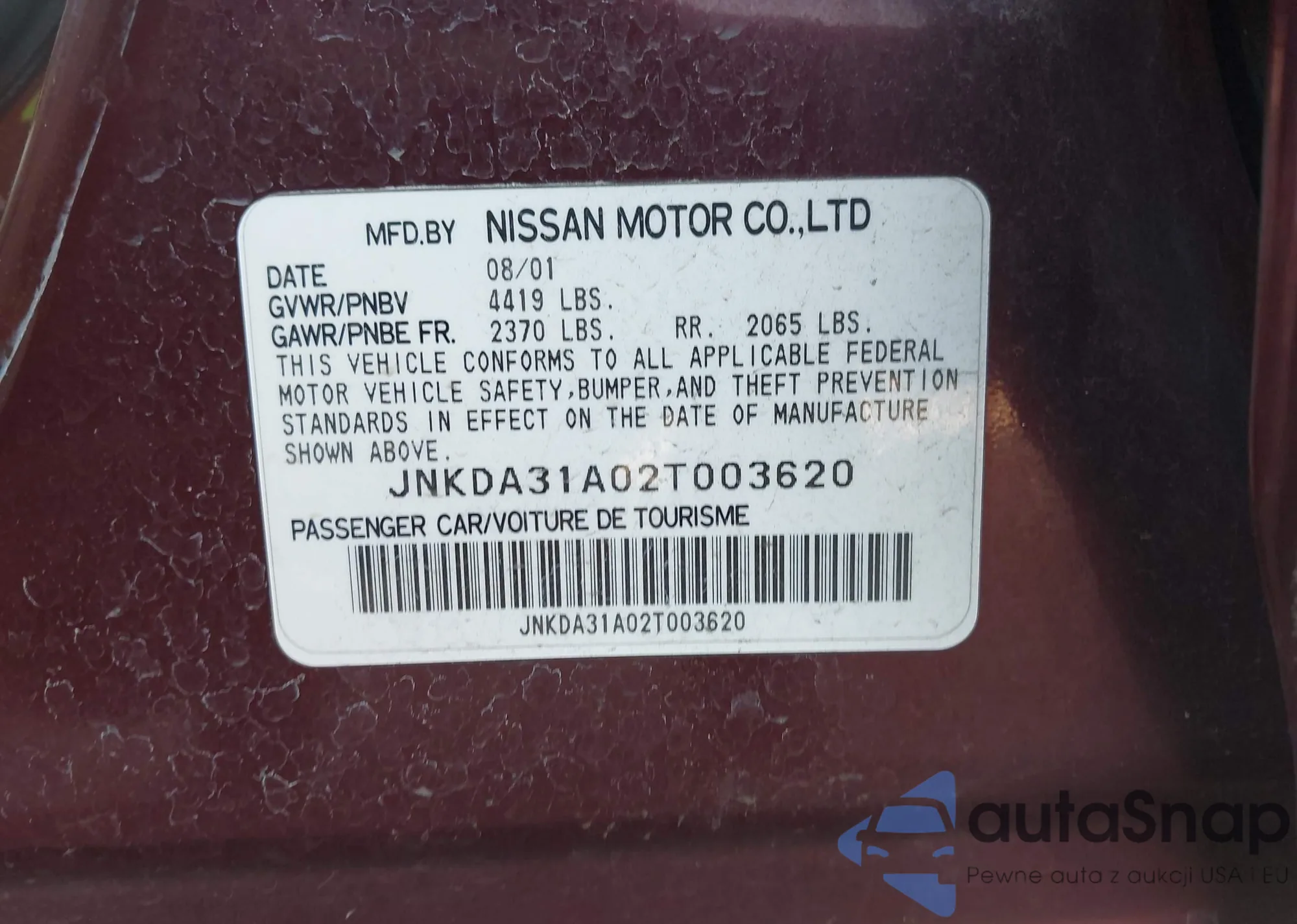 • VIN: JNKDA31A02T003620
