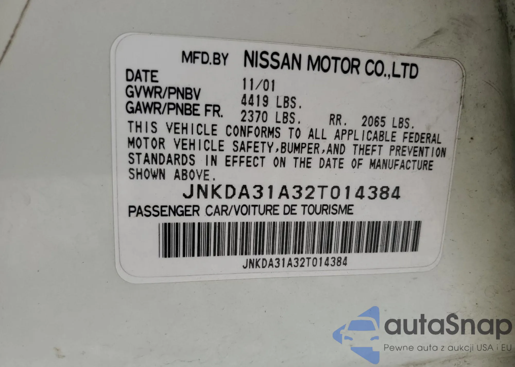 VIN: JNKDA31A32T014384