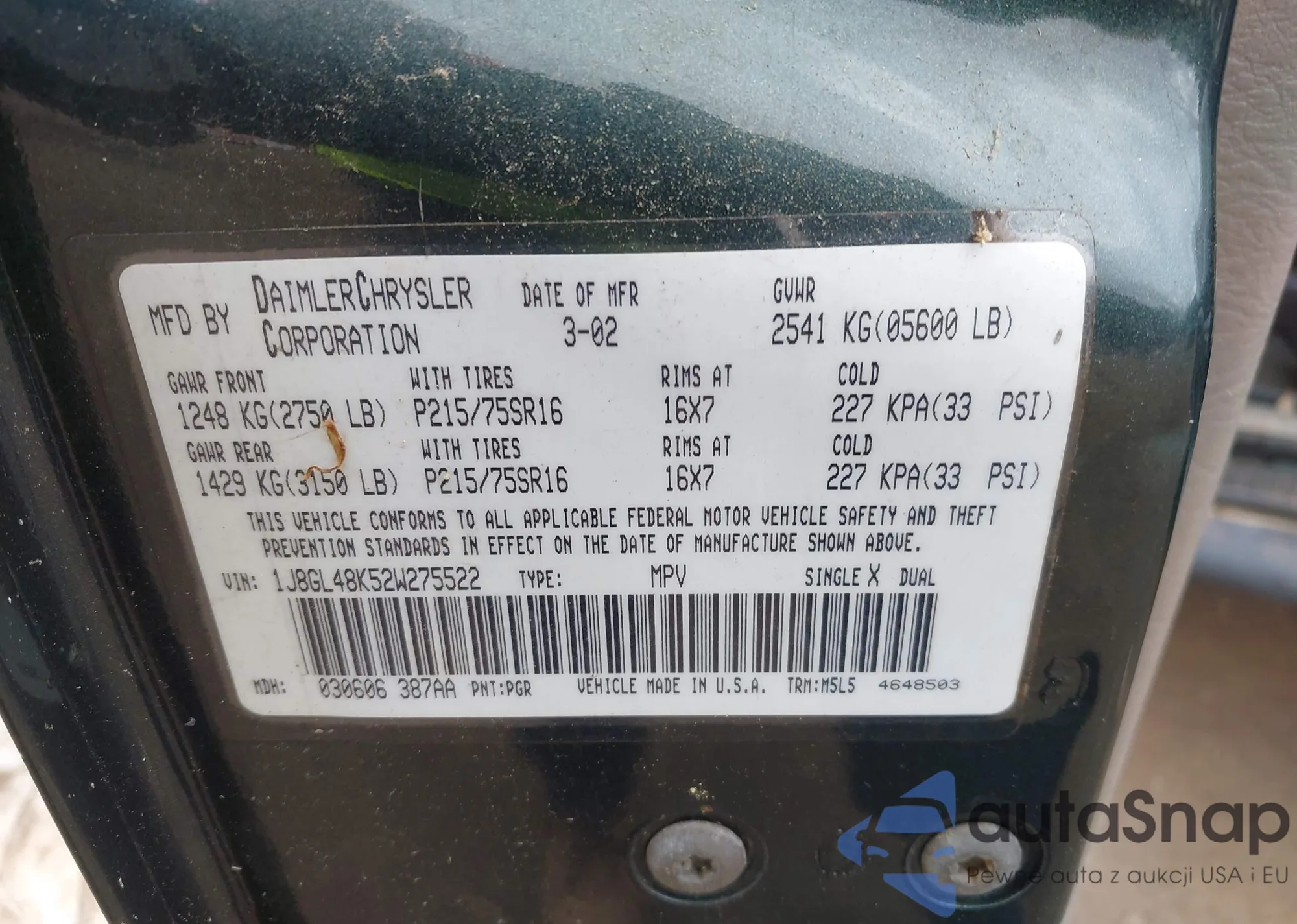 VIN: 1J8GL48K52W275522