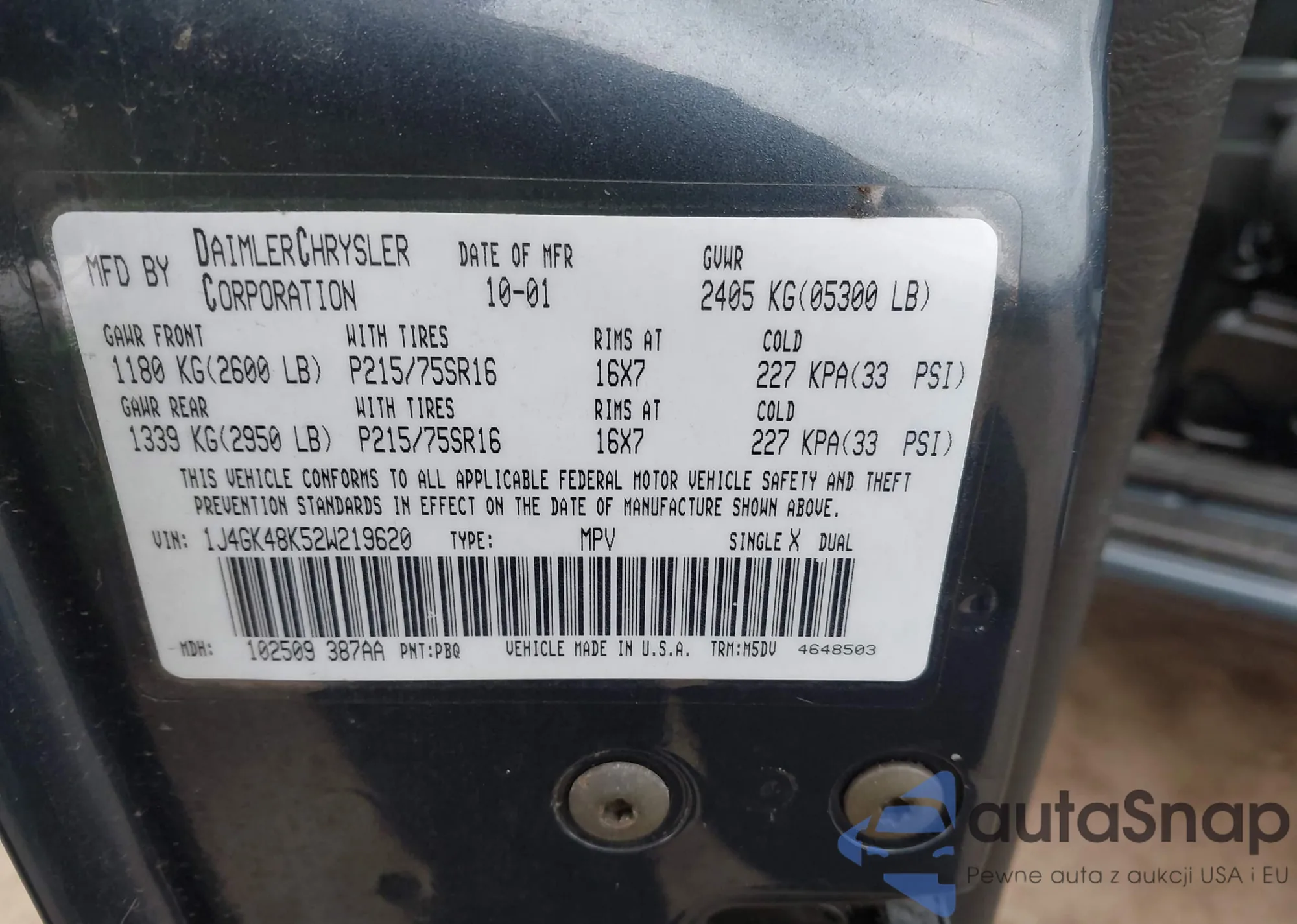 VIN: 1J4GK48K52W219620